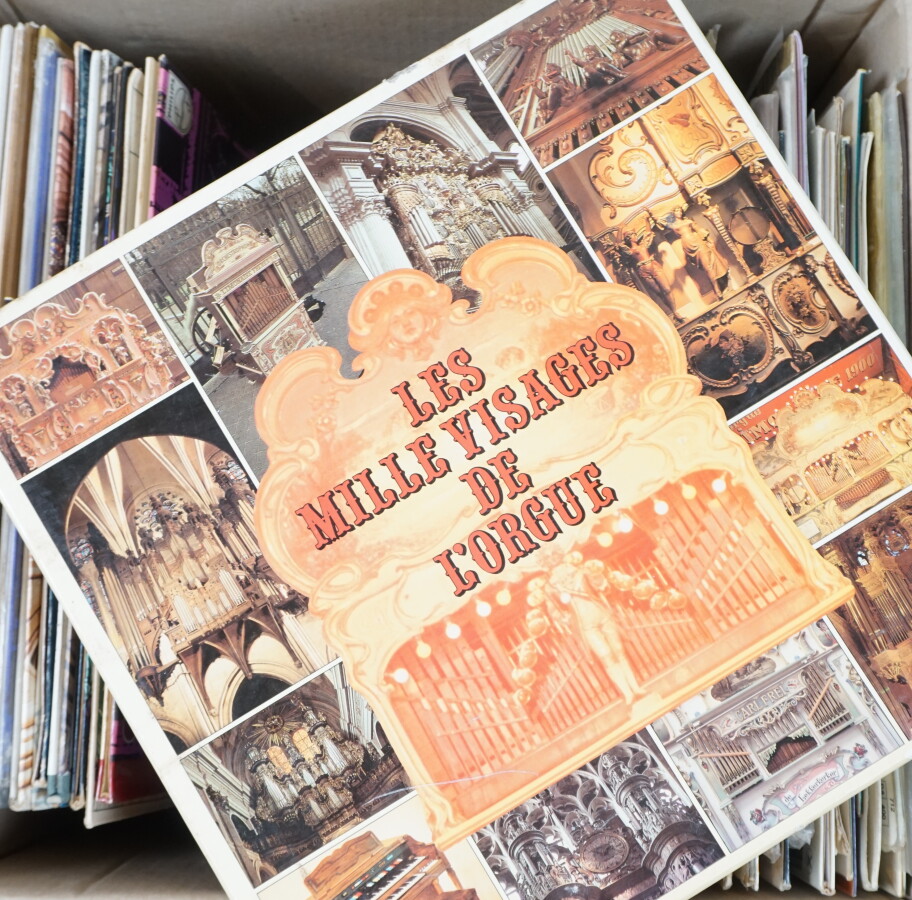 Ensemble de disques vinyles 33 tours sur le thème de la musique religieuse comprenant les Chants de Lourdes, Les mille visages de l'orgue, etc (en l'état).