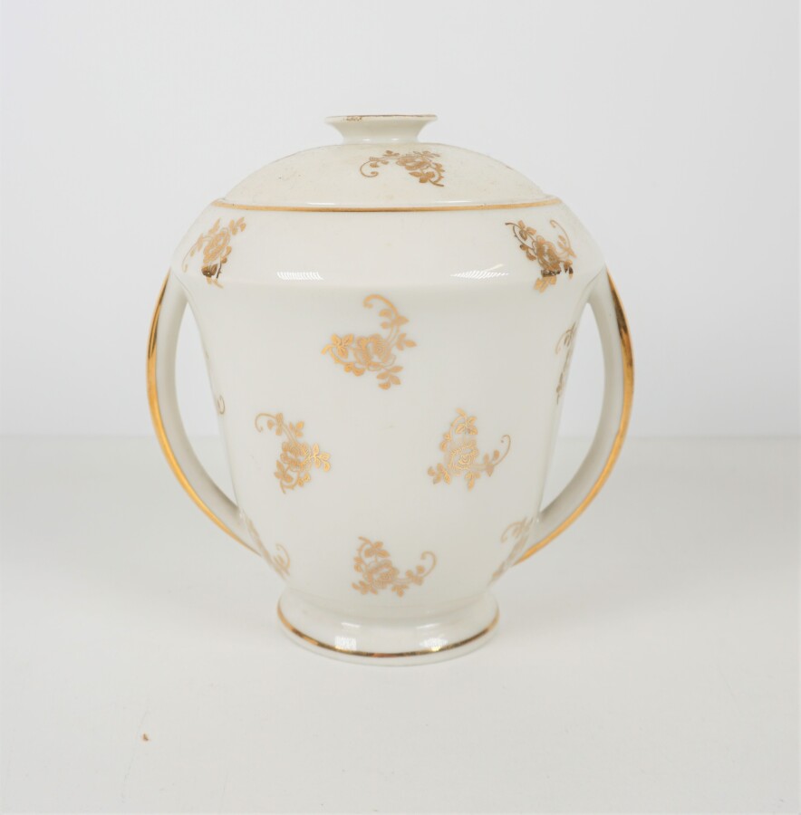 On joint, 8 soucoupes et un pot à sucre en porcelaine de Limoge, à décor de fleurs, une grande tasse et sa sous-tasse à décor de fleurs rouge et divers (quelques éclats, usure à la dorure, en l'état).
