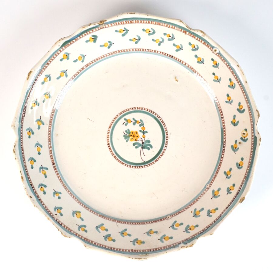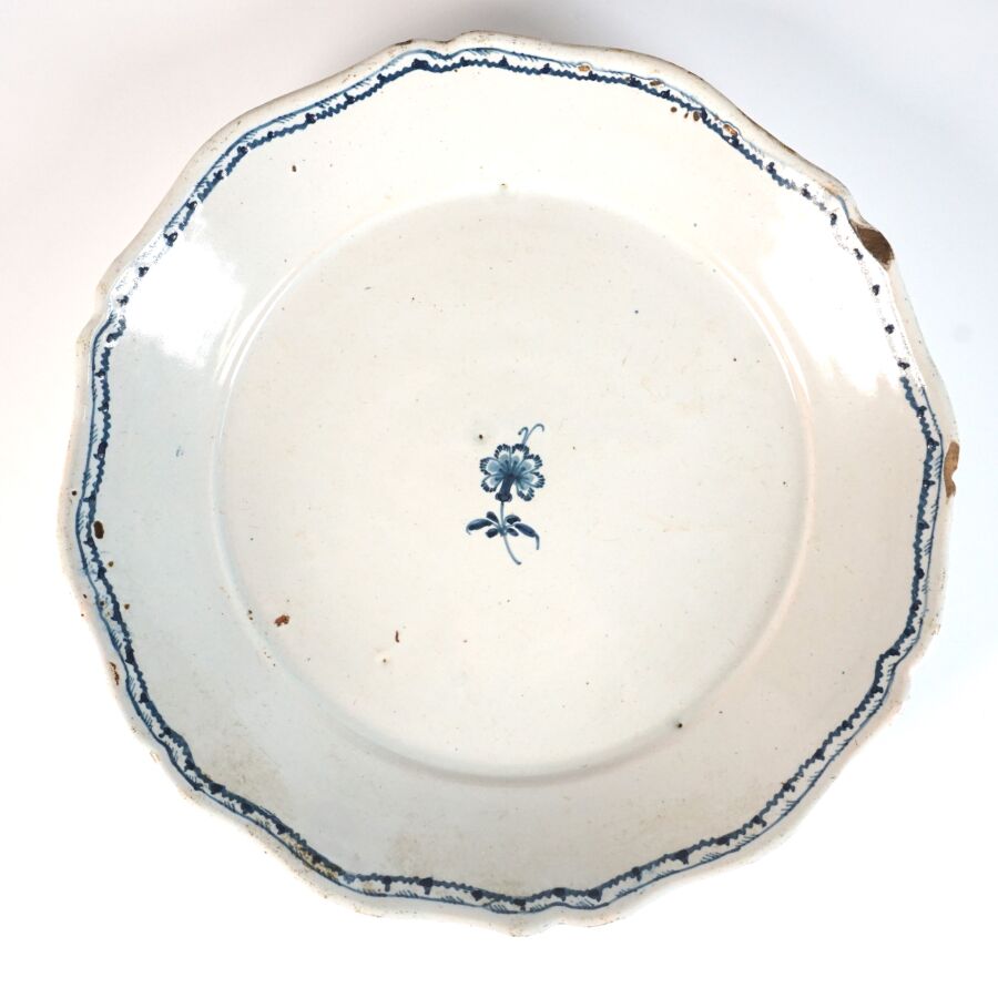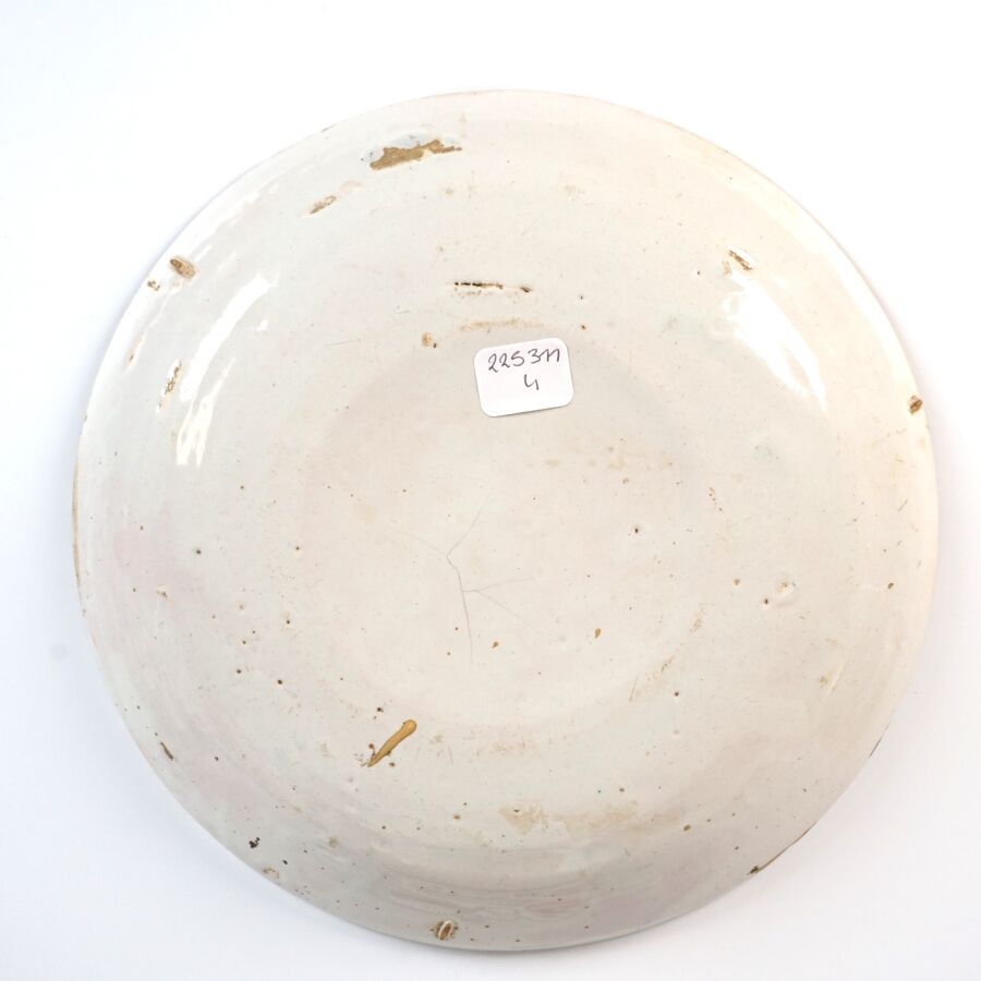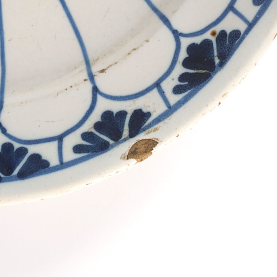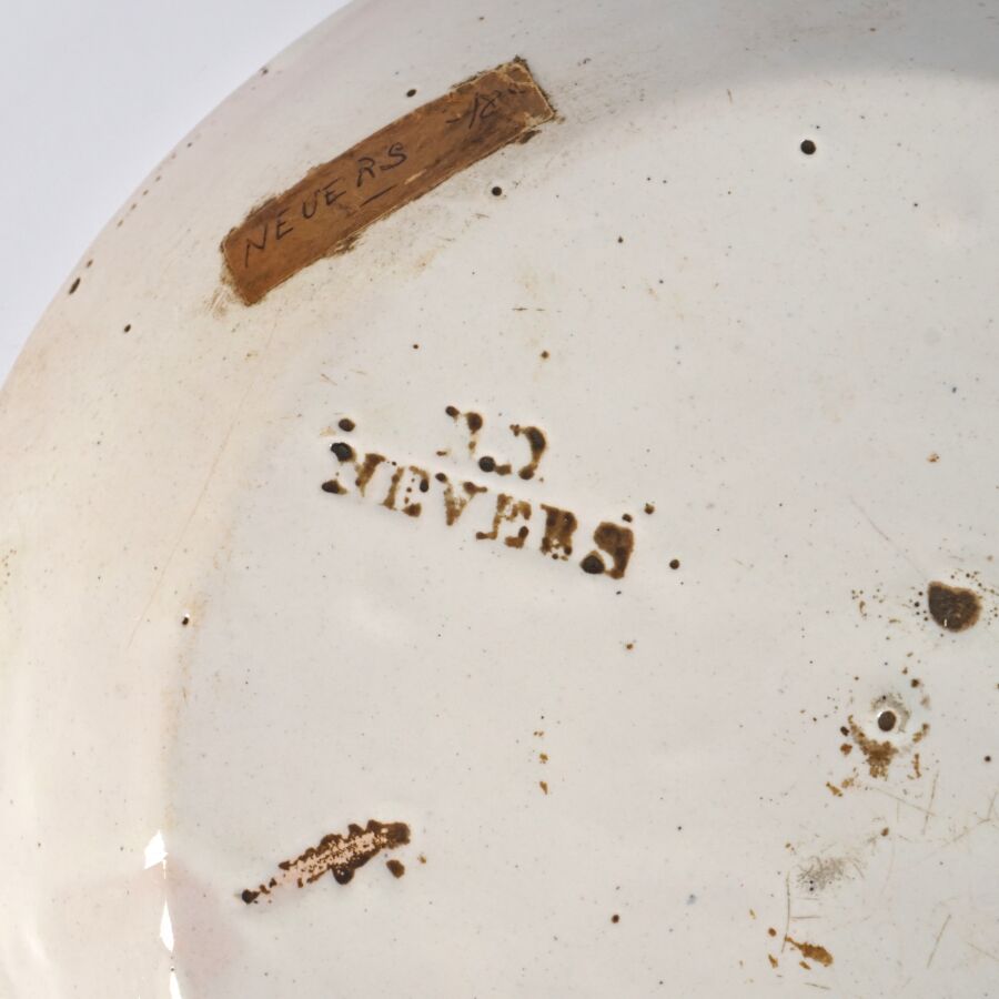 Ensemble de six assiettes en faïence émaillée polychrome, divers décors et manufactures dont Rouen et Nevers, 18ème et 19ème siècles, Diam. De 22.5 cm à 23.3 cm (quelques sauts et éclats).