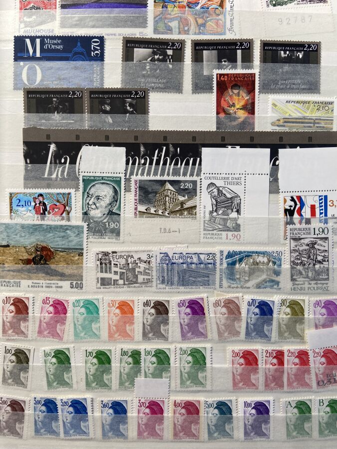 Ensemble de timbres de France en majorité N** dans 6 albums et 8 boites. On y joint des TP du monde divers.