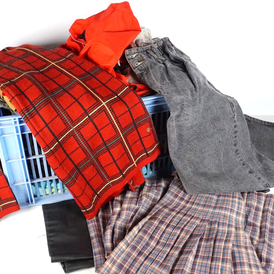 Ensemble d'environ 30 vêtements divers, homme et femme, comprenant pantalons, jupes, vestes, et chemisiers, de marques diverses dont ALAIN MANOUKIAN, BURTON, ZAPA, NAF NAF, CELIO, BANDOLERA, etc. (en l'état).