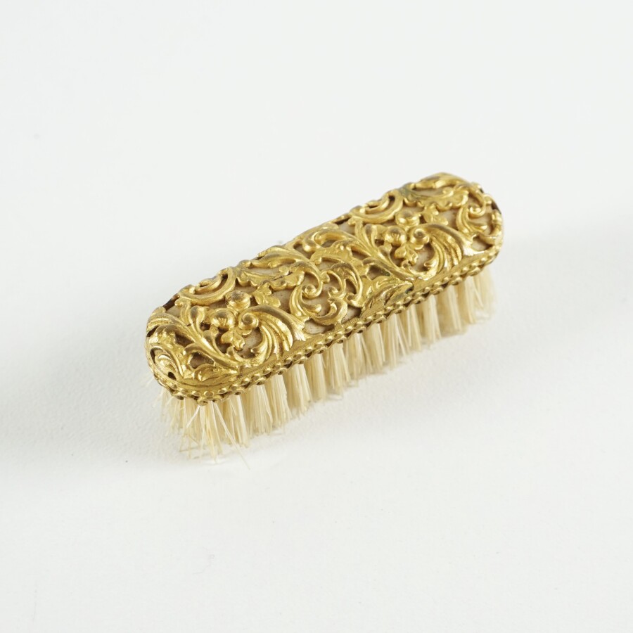 Ensemble divers comprenant deux ouvre-lettres (un manche en argent fourré), une boussole, une petite brosse, un porte crayon en argent, un porte aiguille en métal argenté, un petit couteau "automobile", pommeau de canne ciselé, et divers (usures, traces).