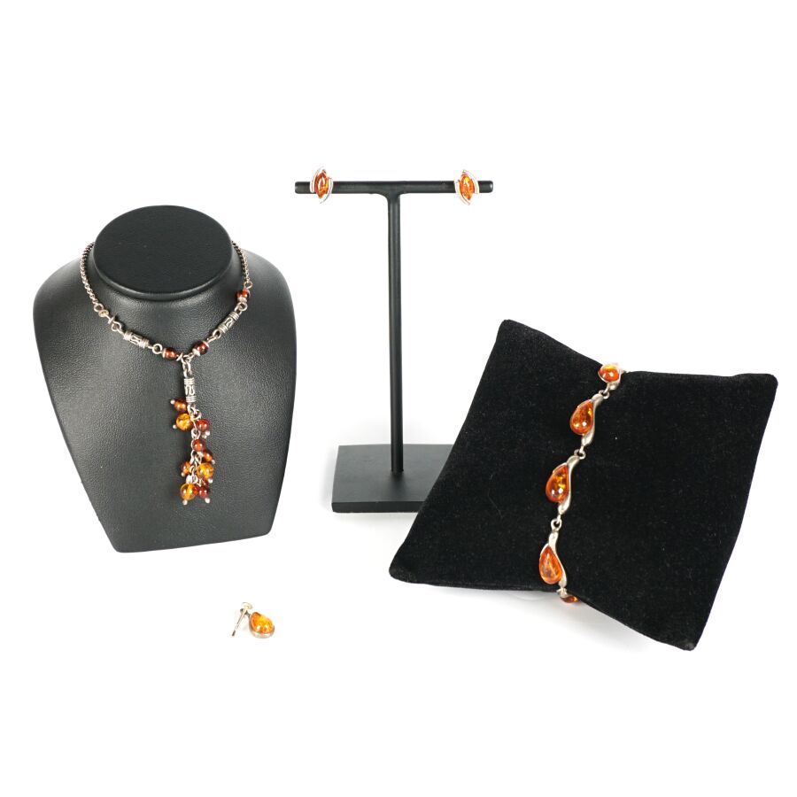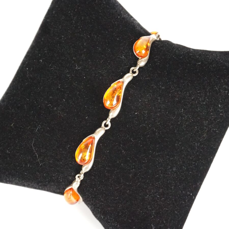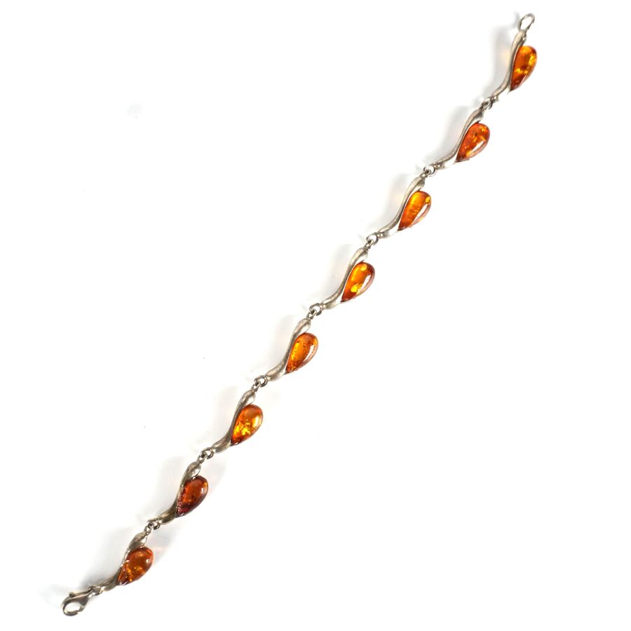 - Bracelet articulé composé de 8 maillons de forme libre sertis chacun d'un cabochon d'ambre, fermoir mousqueton, L. 18.5 cm (petites égrenures aux cabochons).