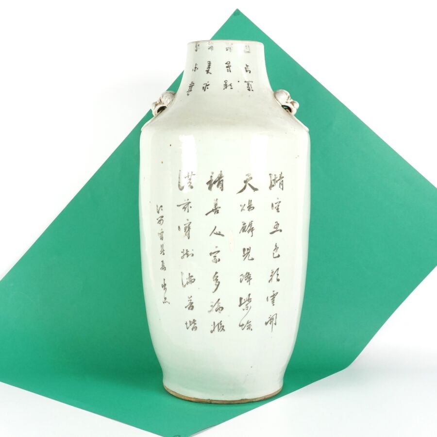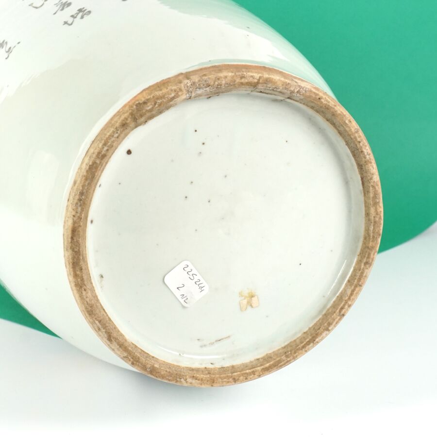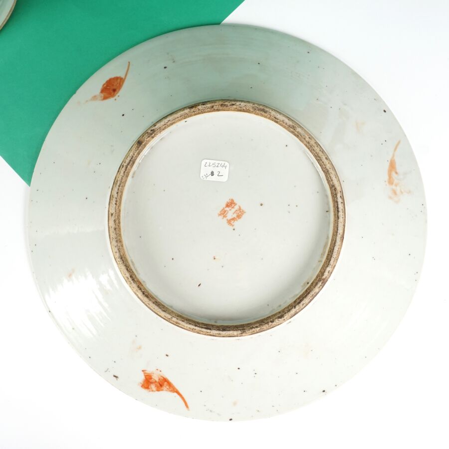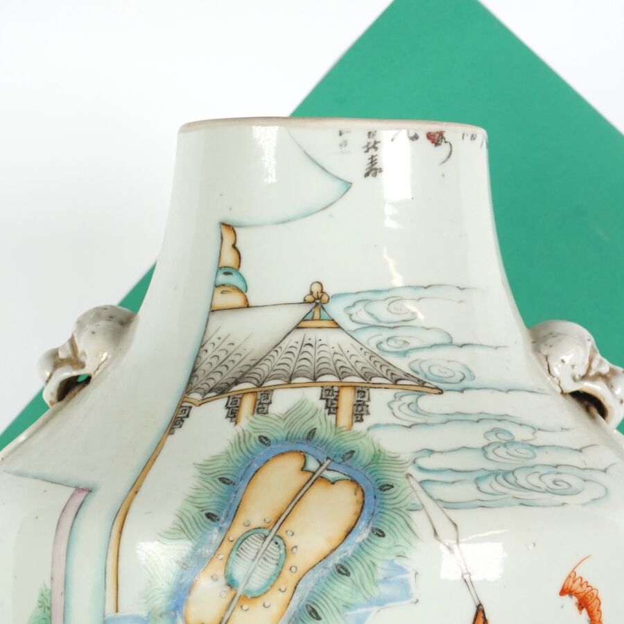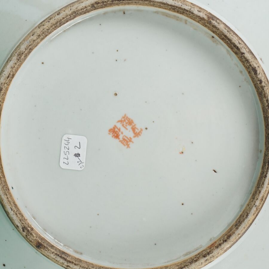 Ensemble en porcelaine et émaux de la famille rose comprenant un vase de forme balustre à décor de personnages chevauchant un dragon (H. 47 cm) et un plat rond à décor en plein de fleurs, Chine (D. 34,5 cm) (col coupé).