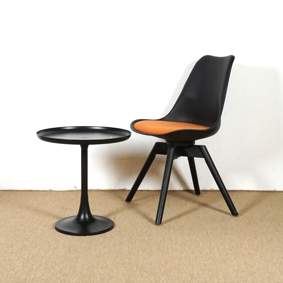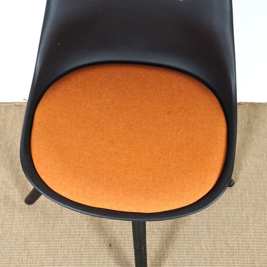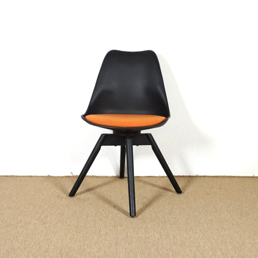 - Chaise, garniture orangé en tissu, piétement pivotant, H. 83 cm.