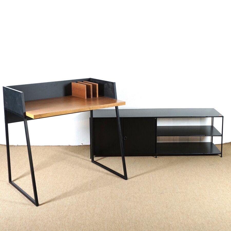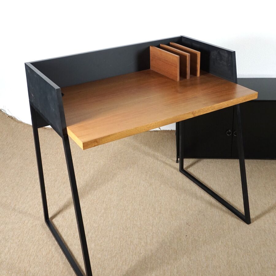 - Petit bureau droit, plateau en bois stratifié agrémenté d'un rangement à courrier, Dim. 88 x 90 x 60 cm.