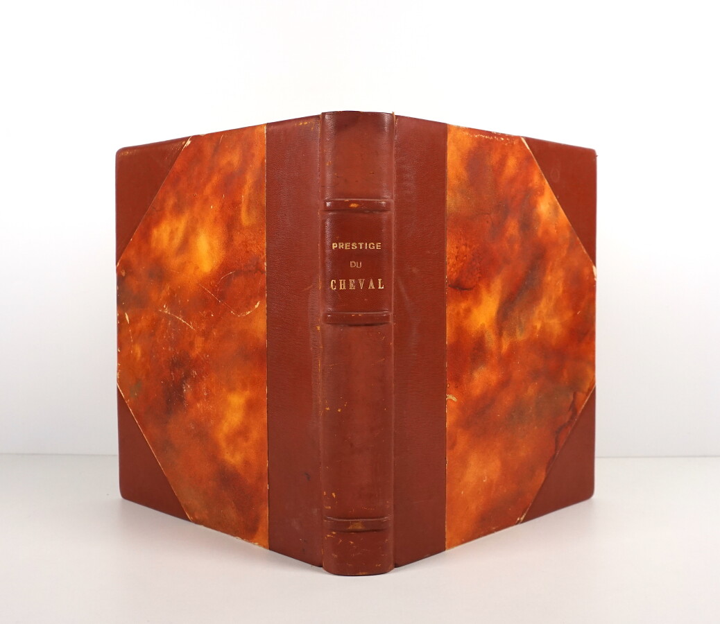[ÉQUITATION] - [COLLECTIF] - Prestige du cheval - Paris ; Durel Éditeur, 1951 - 1 volume In-4° - Illustrations in et hors texte en noir de Guy Arnoux, Pierre Dubaut, Lieutenant-Colonel Eble, André Fremond, Commandant Margot, Joseph Oberthur, Xavier de Poret et Karl Reille - Reliure de l'époque demi-basane havane à coins - Dos à nerfs titré or - Bon exemplaire.
