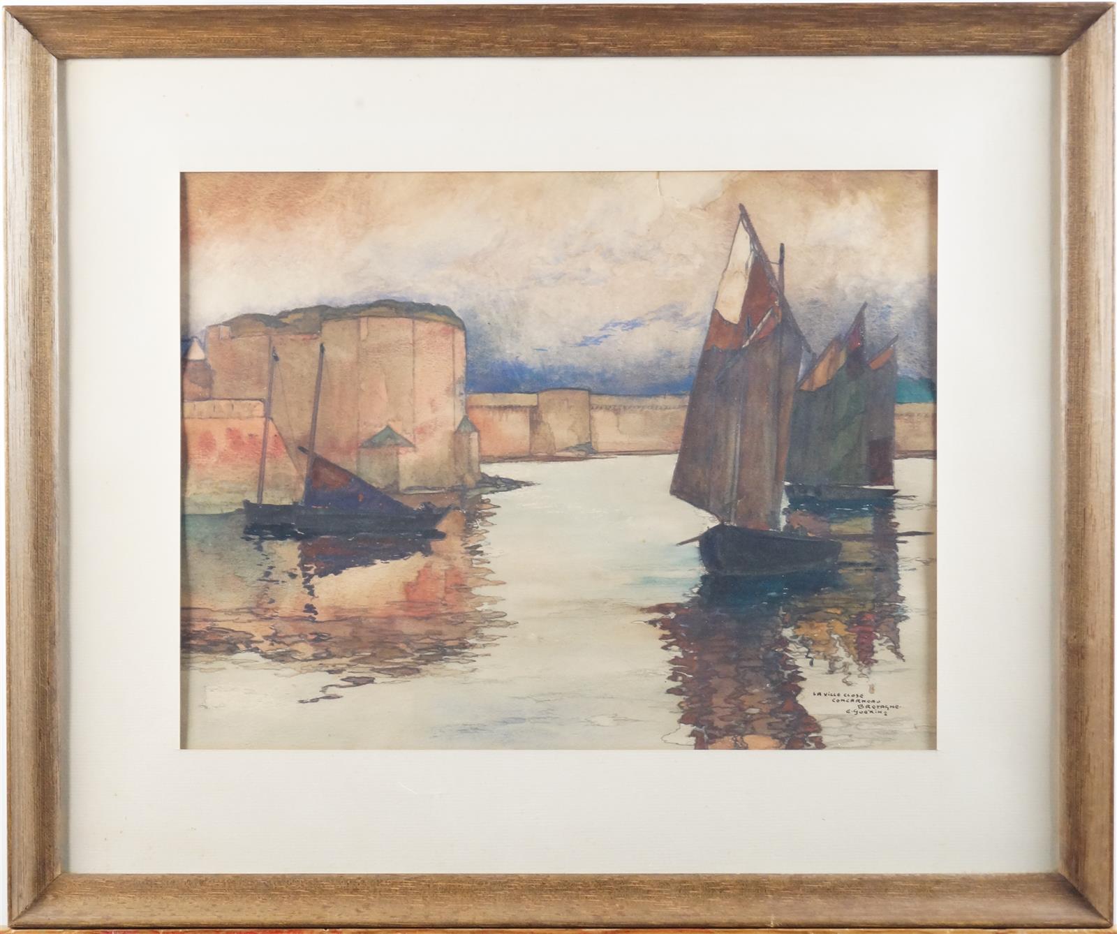 Ernest Pierre GUÉRIN (1887-1952), "La ville close, Concarneau", aquarelle et mine de plomb sur papier, signée et située en bas à droite, 25.5 x 33.5 cm (à vue).