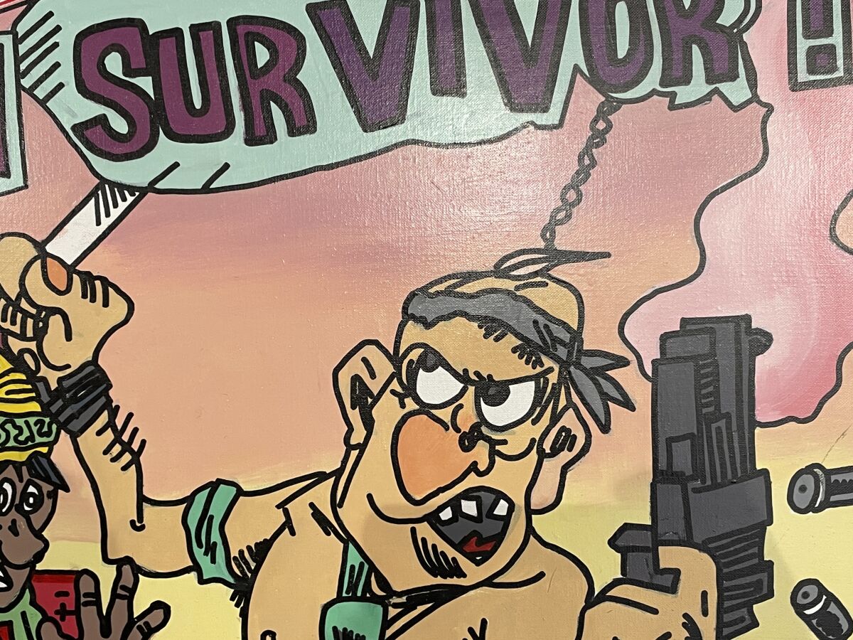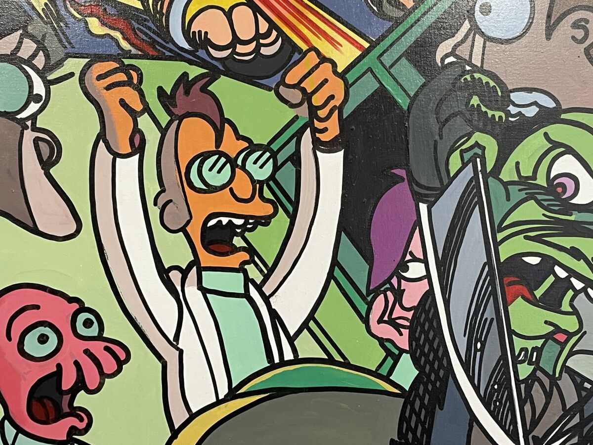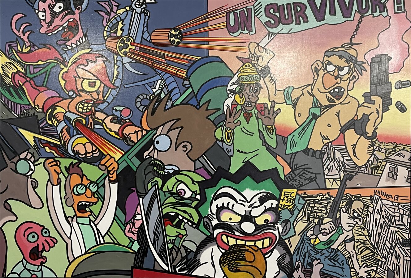 ERRÖ (1932), "Conquistadores", acrylique sur toile, signée au dos et titrée sur le chassis, 89 x 130 cm.