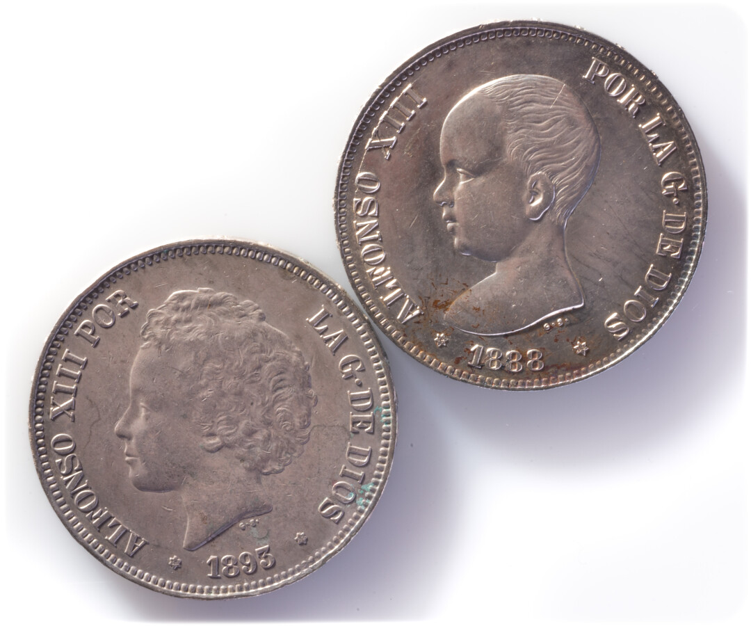ESPAGNE - Alfonse XIII : Ensemble de 2 monnaies comprenant :