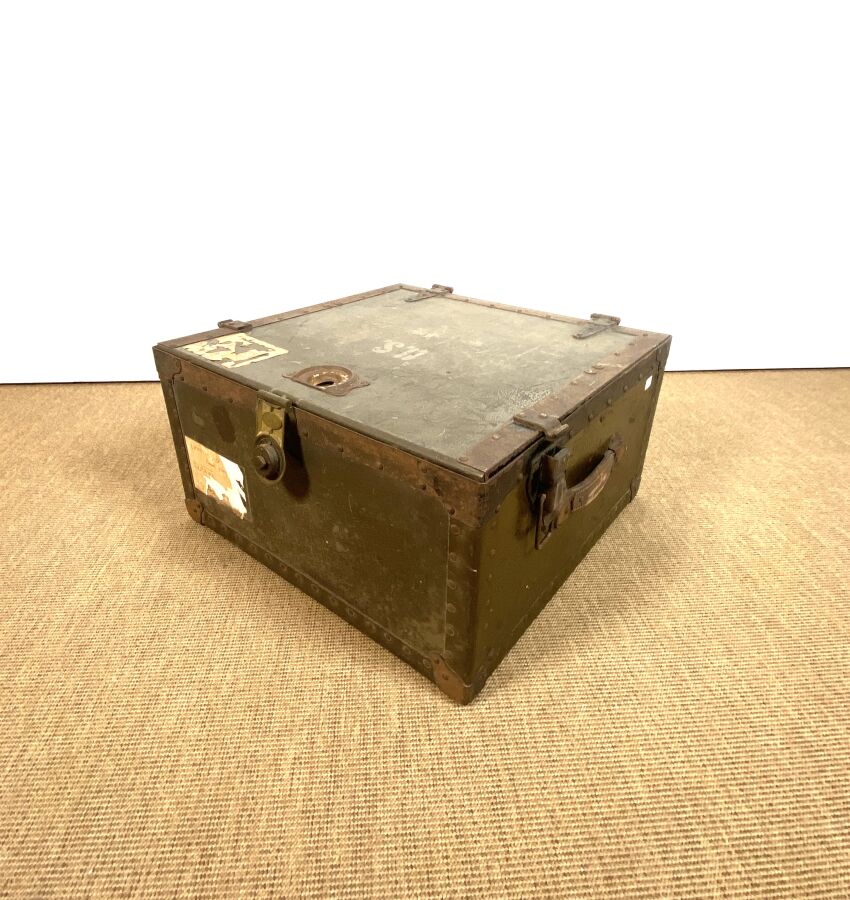 ETAT-UNIS - SECRETAIRE DE CAMPAGNE, en bois peint à renforts métalliques 49 x 50 x 28 cm, BE.