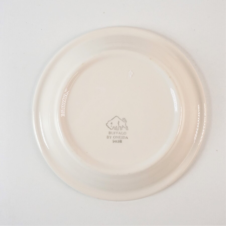 ETATS-UNIS - Petite ASSIETTE DU DEPARTEMENT DE LA MARINE, en porcelaine blanche à filets or et bleu et insigne du Département d'état, 17,7 cm de diamètre, TBE.