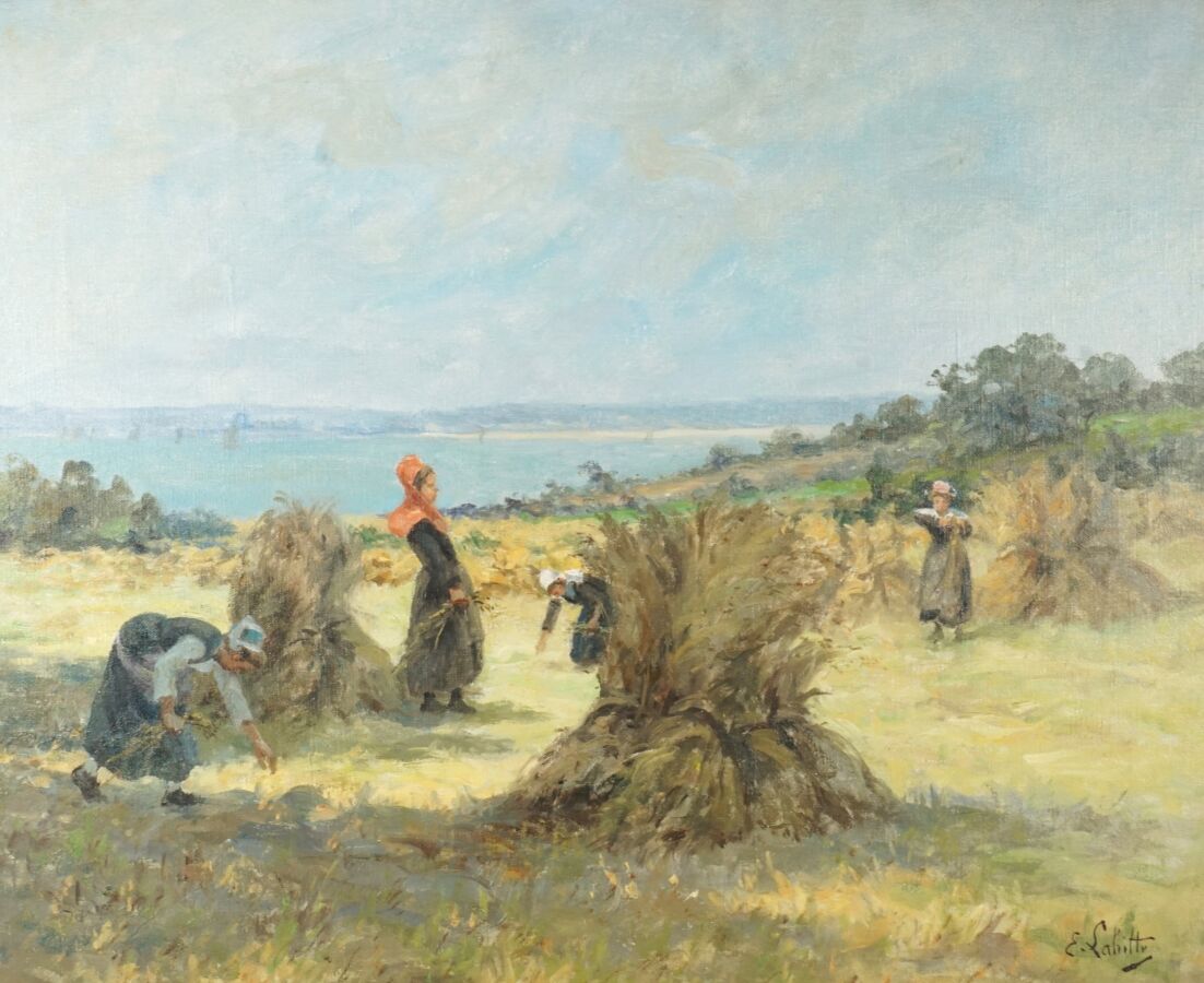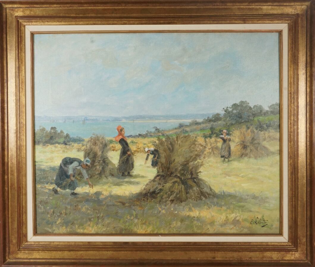 Eugène LABITTE (1858-1937), "Fenaison", huile sur toile signée en bas à droite, 60 x 73 cm.