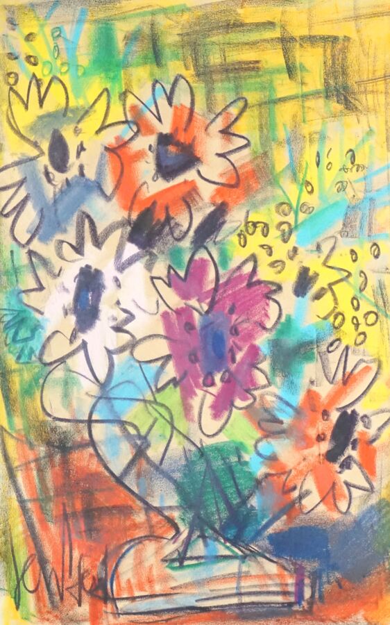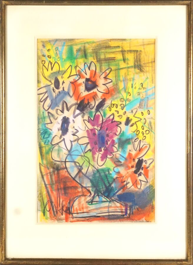 Eugène PAUL dit GEN PAUL (1895-1975), "Vase de fleurs", dessin au fusain et pastel sur papier, signée en bas à gauche, 26 x 40 cm (à vue).