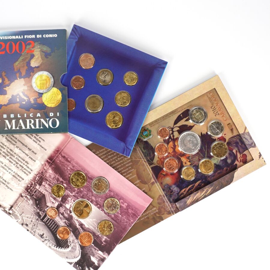 EURO : Lot de 3 Sets comrpenant : Vatican 2002 avec médaille, San Marin "Caravagio" 2010 avec 5e argent (Poids brut :18 g environ), San Marin 2002.