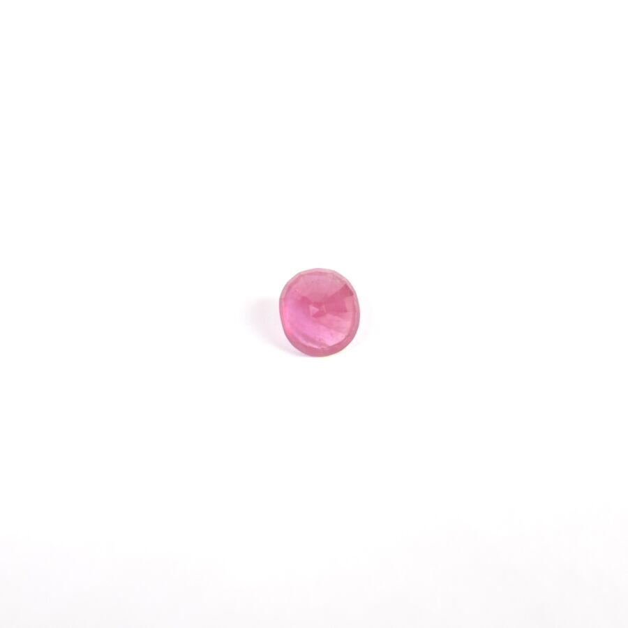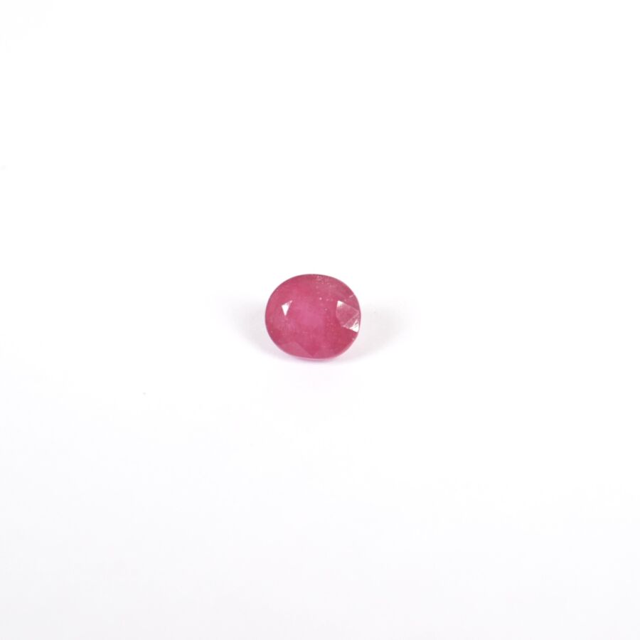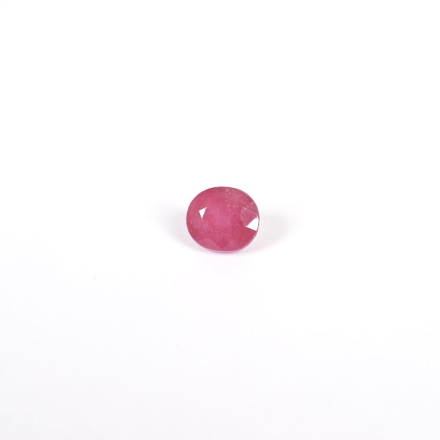 EXPERTISE Rubis facetté sur papier, de taille ovale calibrant 5.93 cts environ (D. 1.05 x 0.95 cm), Poids brut : 1.2 g environ (inclusions et égrisures).