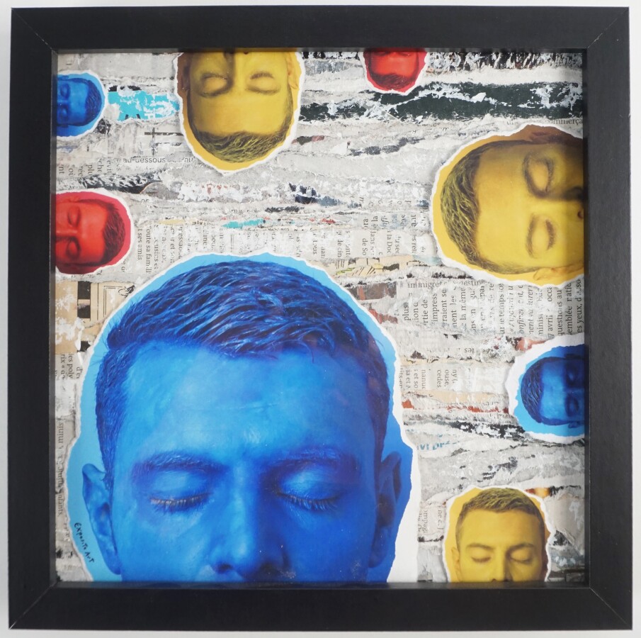EXPOSITO (1991), "Inside me" 2020, technique mixte et collage, signée en bas, 20 x 20 cm (encadrée sous verre).