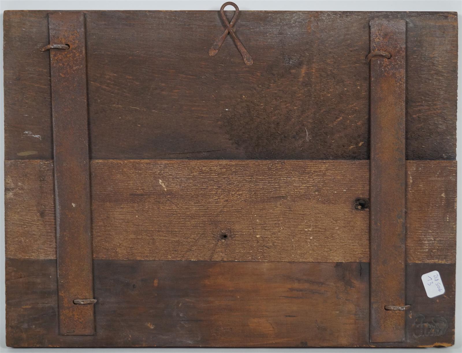 F. CONZ, "Brigantine, impression sur panneau de bois, signée au dos, 30 x 40 cm