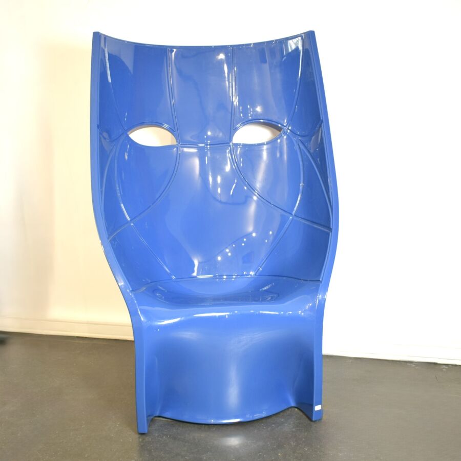 Fabio NOVEMBRE, DRIADE : Fauteuil pivotant "Nemo", polyéthylène laque bleu, H. 132 cm, Larg. 83 cm, Prof. 43 cm. (petit manque au niveau du nez)