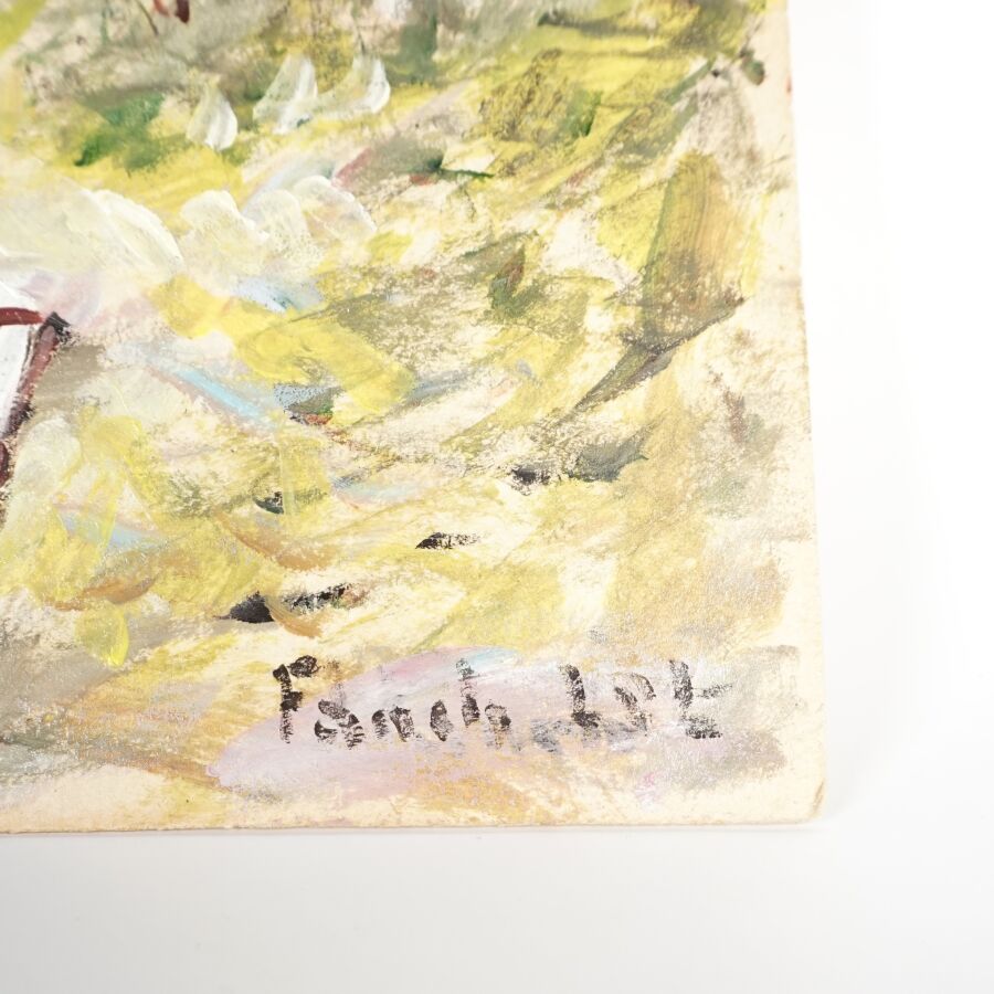 Fanch LEL (1930-2022), "Les Lavandières", gouache sur carton signée en bas à droite, titrée et contresignée au dos, 16 x 22 cm.
