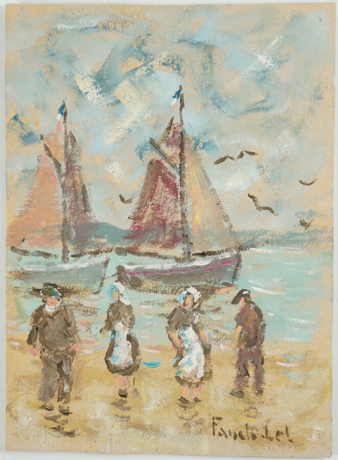 Fanch LEL (1980), "Les vieilles coques à Saint Sulniac" 2014, gouache sur carton signée en bas à droite, titrée et contresignée au dos, 22 x 16 cm.
