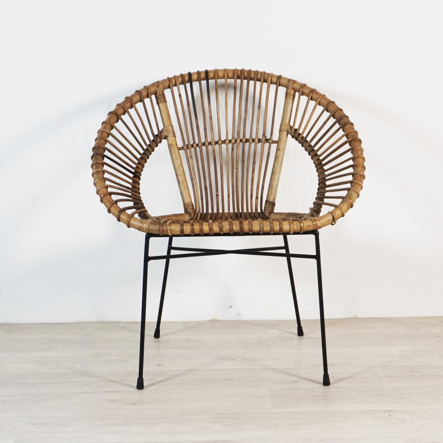 Fauteuil, assise et dossier ajouré, piètement en métal laqué noir, production moderne, H. 80 cm.