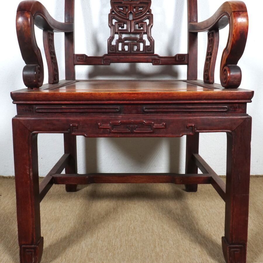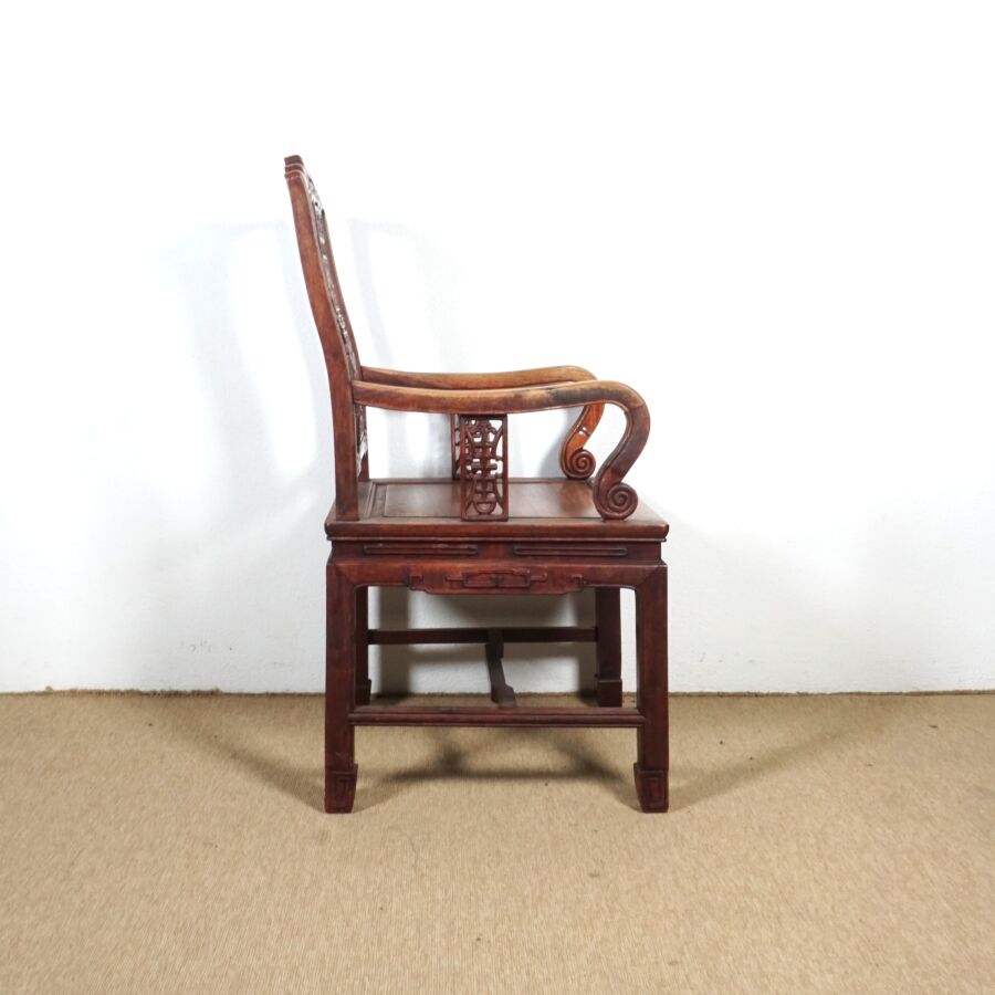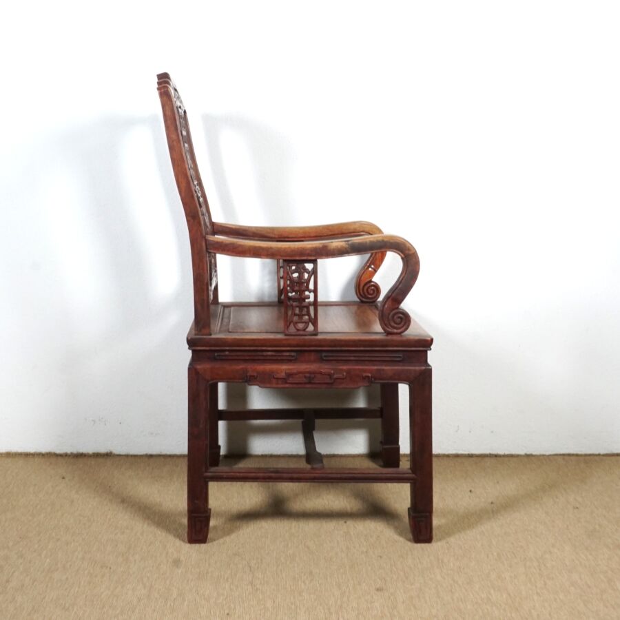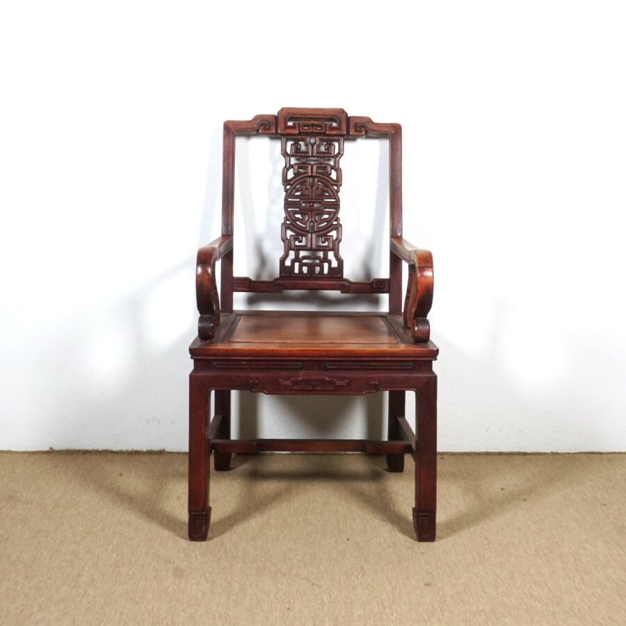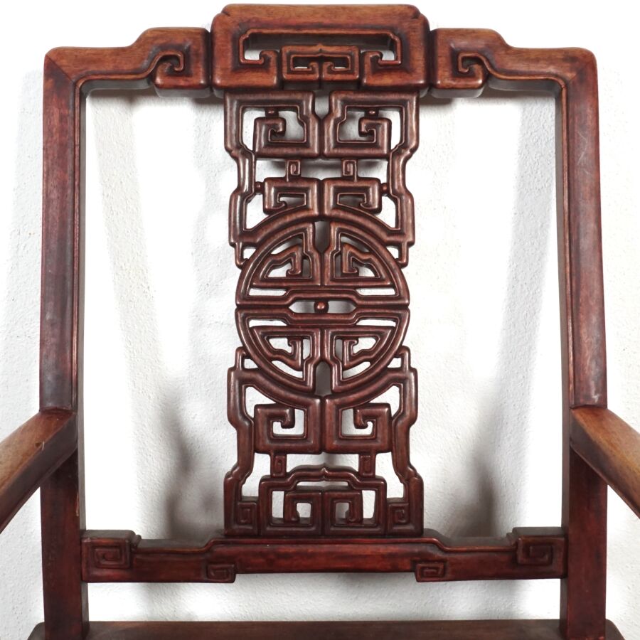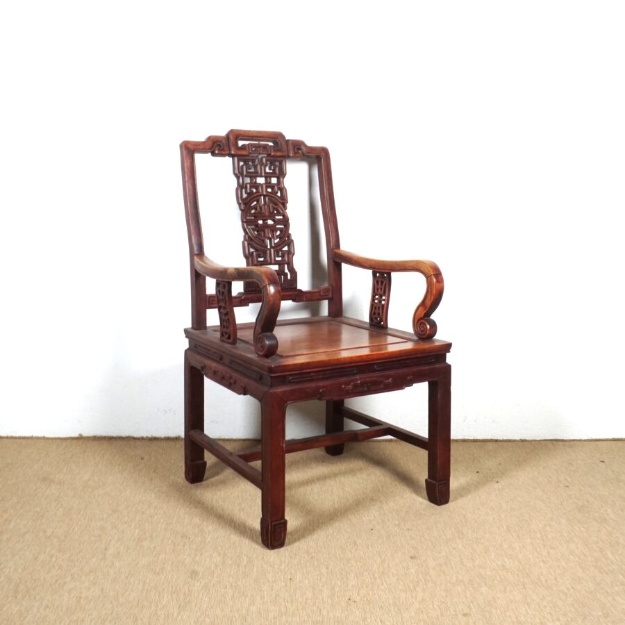 Fauteuil en bois sculpté, dossier à décor d'un médaillon ajouré, Chine, 97 x 53.5 x 50 cm.