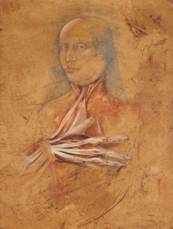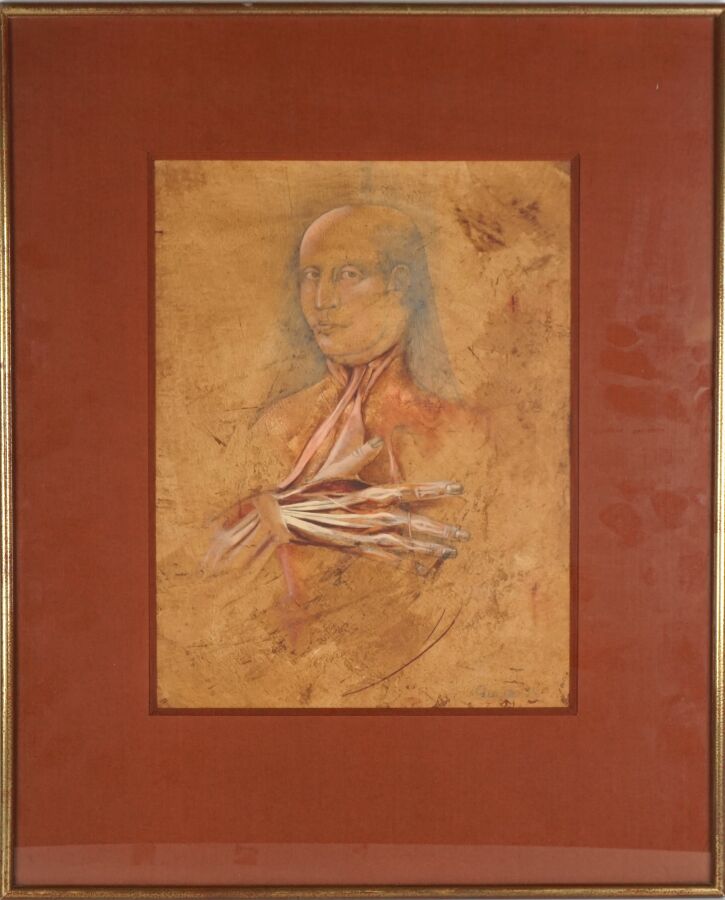 Félix De RECONDO (1932- 2015) "Buste main sur le coeur" 76, dessin, aquarelle et rehauts de gouache, signé et daté en bas à droite, 31 x 23.5 cm (à vue).