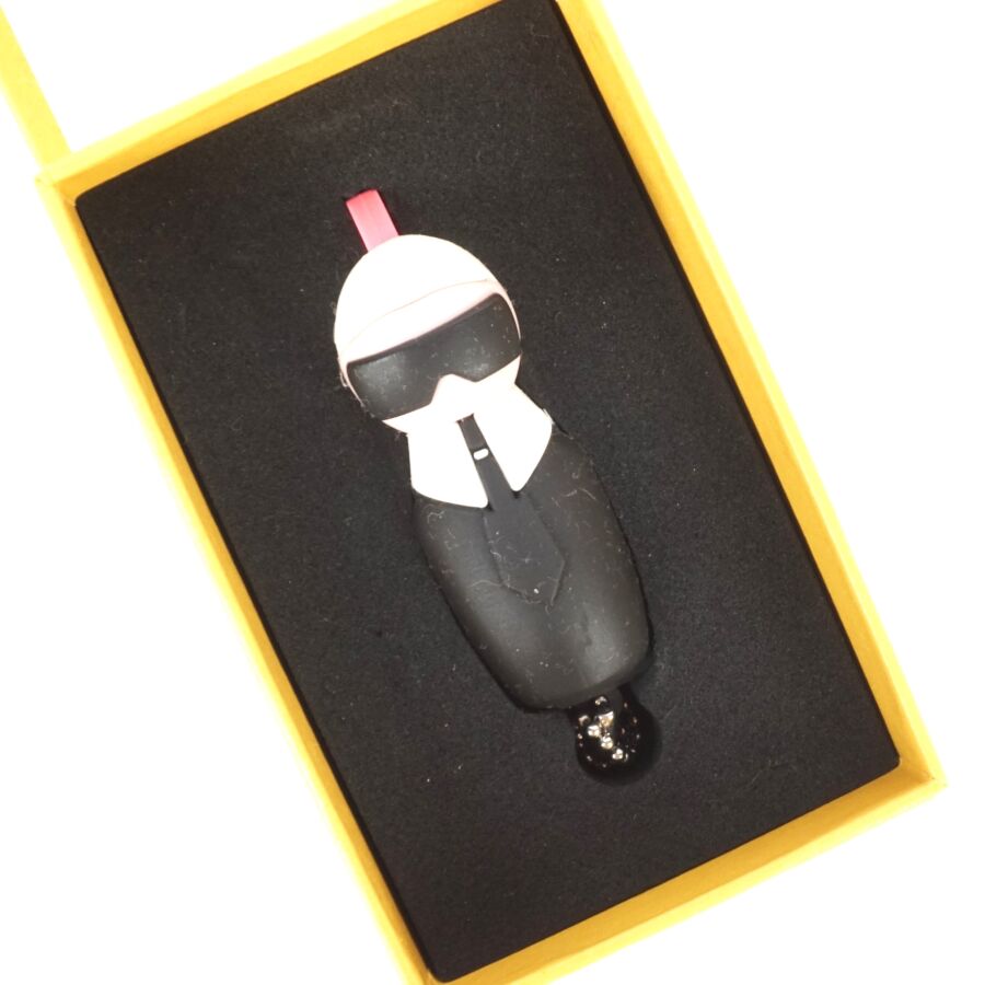 FENDI : Clé USB "Karl" formant porte-clé, présentée dans sa boîte d'origine.