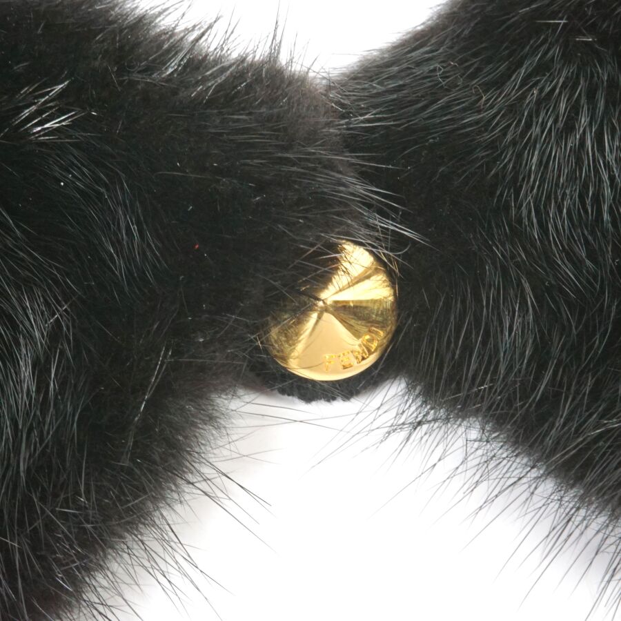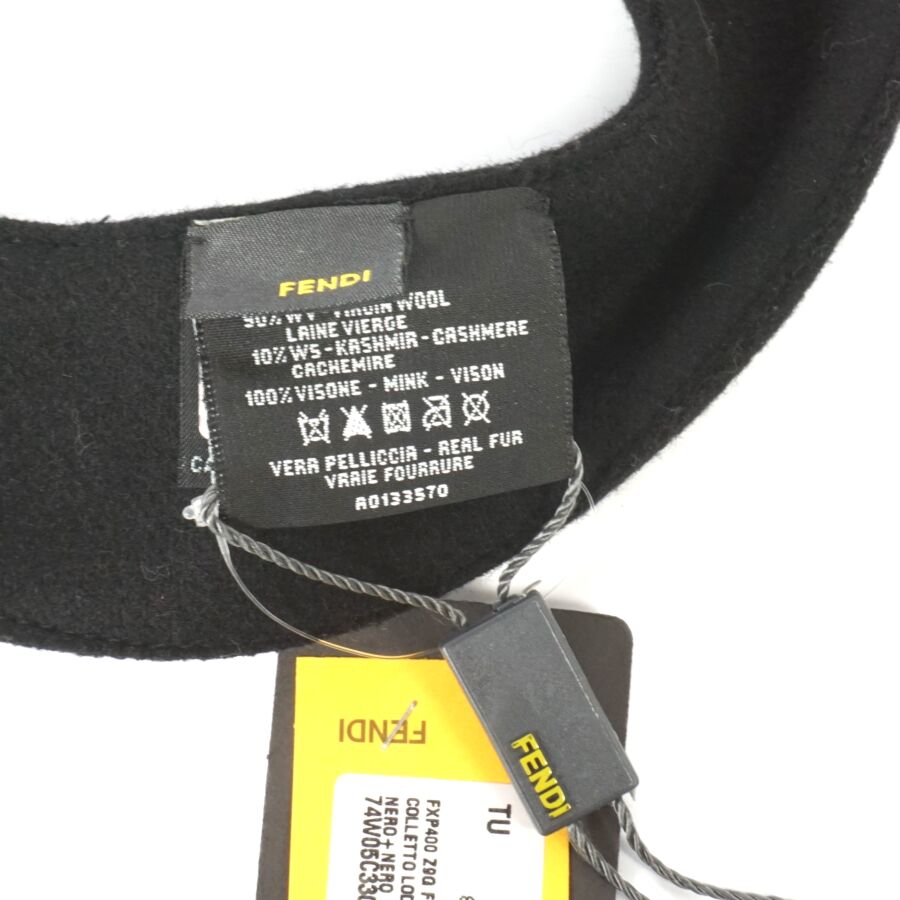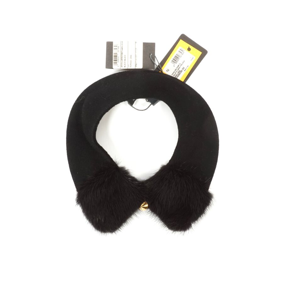 FENDI : Col amovible en cachemire noir et vison noir, attache en métal doré logoté, numéroté, avec ses étiquettes.