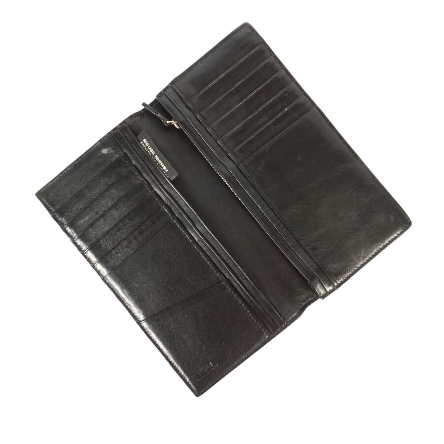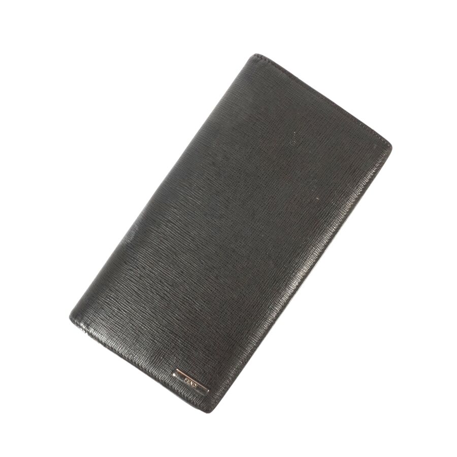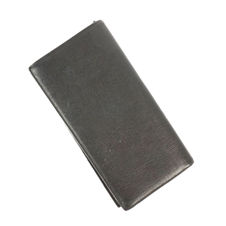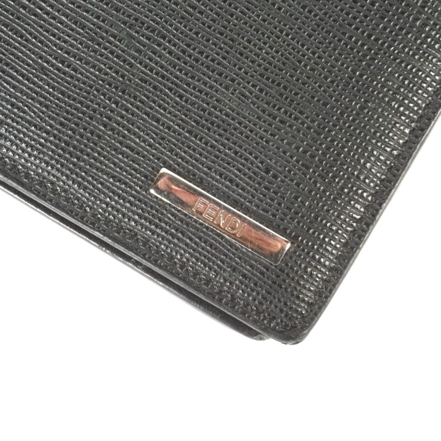 FENDI : Compagnon en cuir noir légèrement grainé, plaque en métal argenté logoté, avec son étiquette intérieure logotée, Dim. 19 x 10 cm (petites usures d'usage).