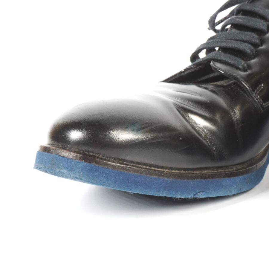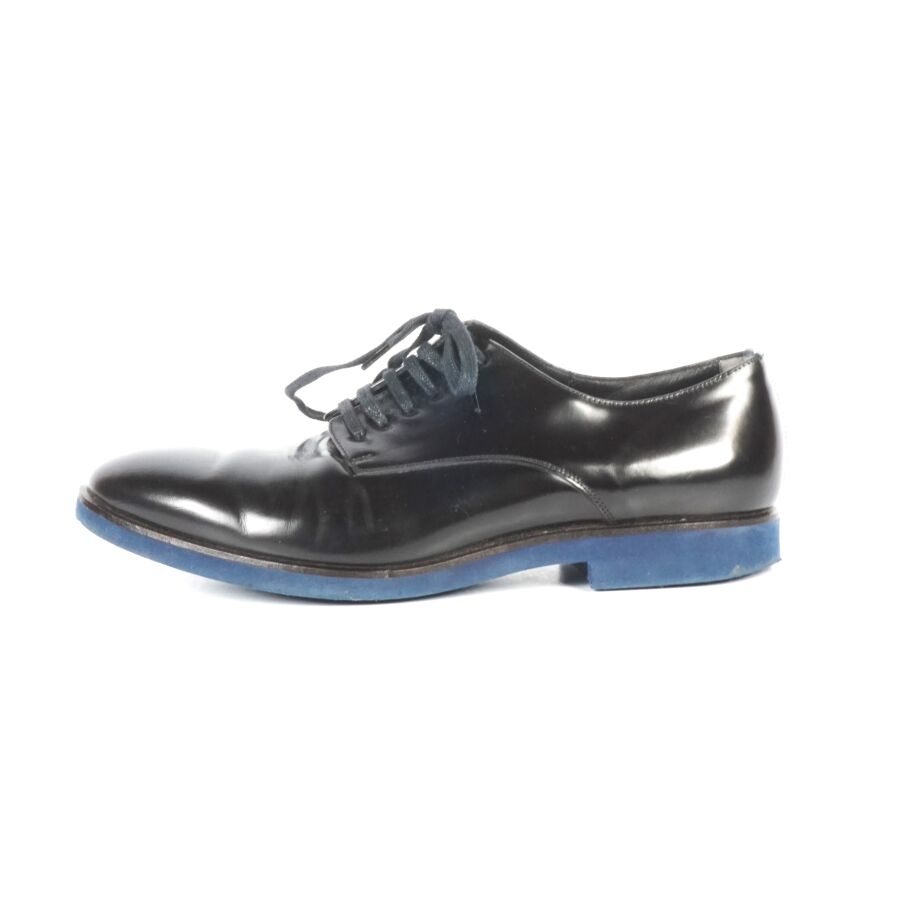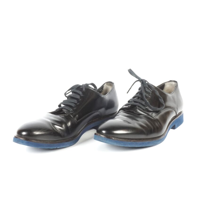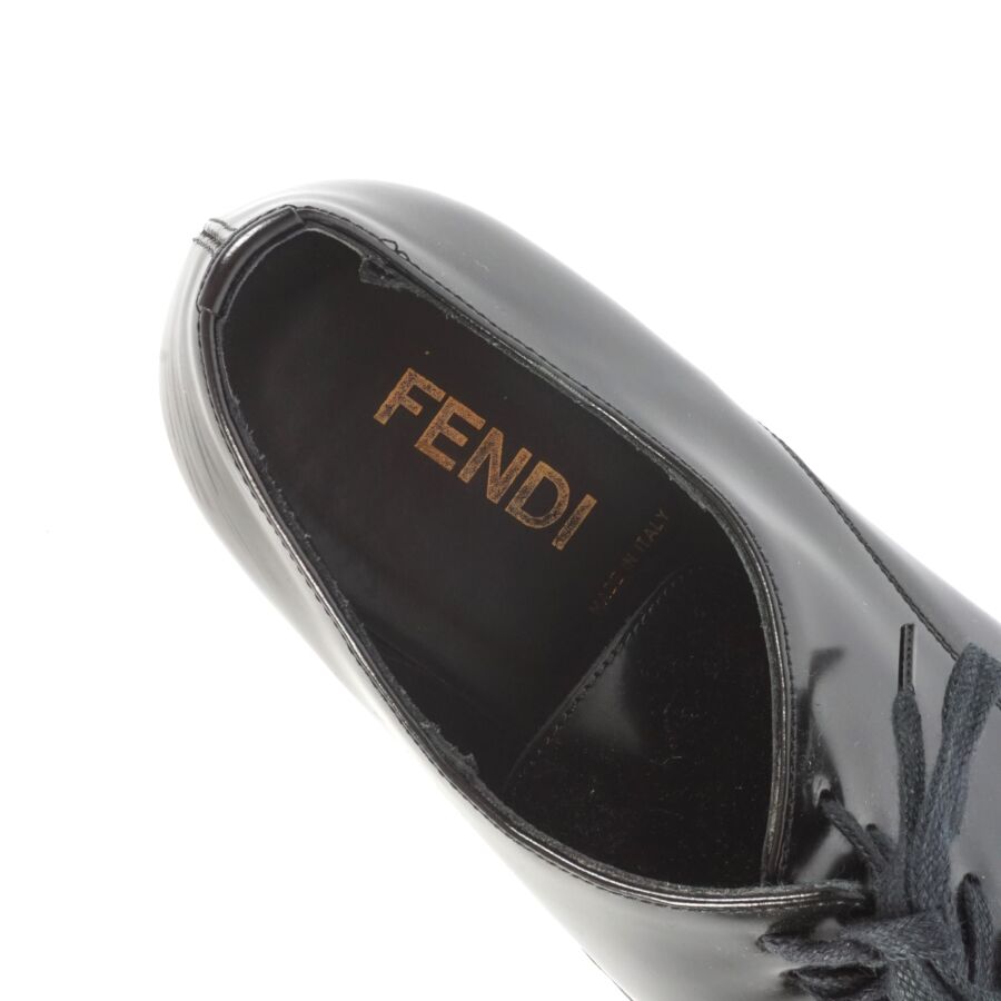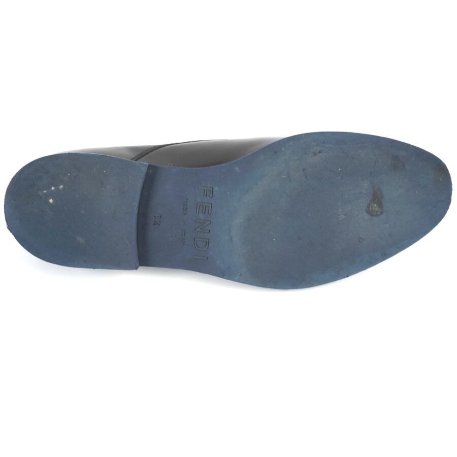 FENDI : Paire de chaussures en cuir lisse noir, lacets noirs, semelle bleue nuit, numérotées sous la languette, taille indiquée 8 1/2 (42.5), présentée avec ses housses d'origine (très infimes traces).