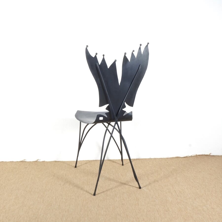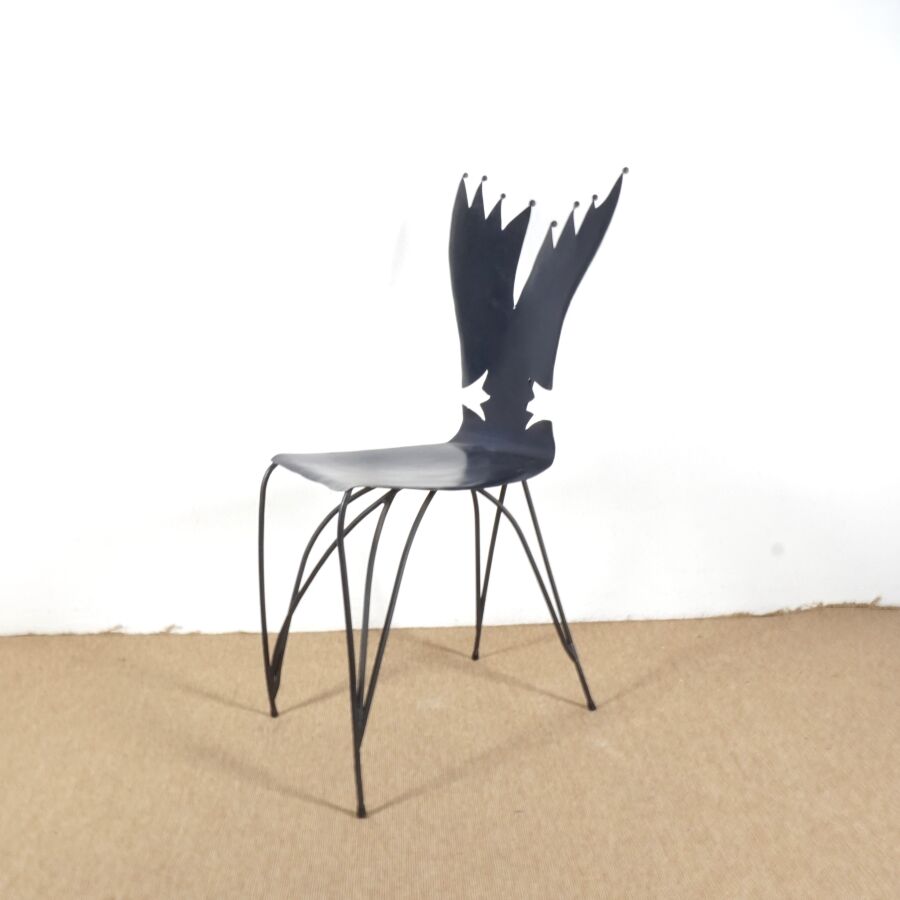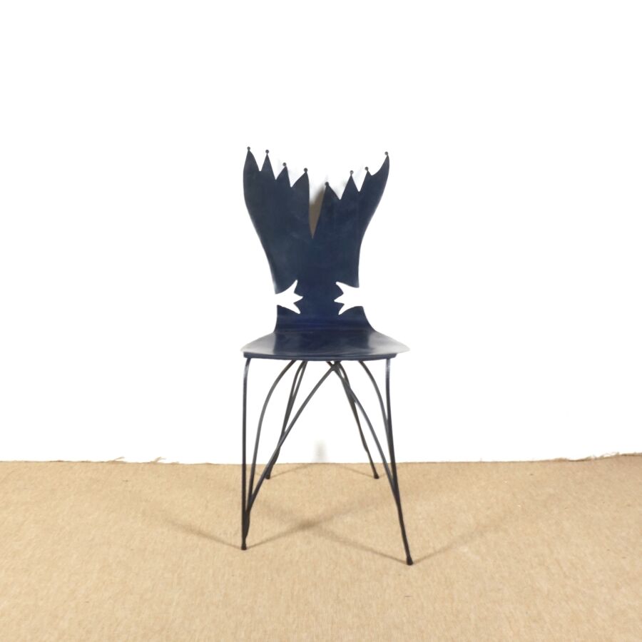 FER AILLEURS - Dans le goût de Gérard COQUELIN (1947), Chaise en métal laqué bleu, H. 97 cm (usures).