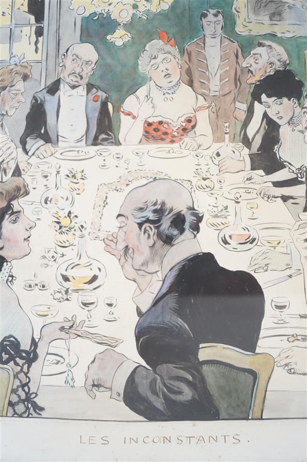 Ferdinand Sigismond BAC (1859-1952), "Les inconstants" & "Les envieux", deux pochoirs formant un pendant, signés en bas à gauche dans la page, 32 x 45 cm (quelques rousseurs).