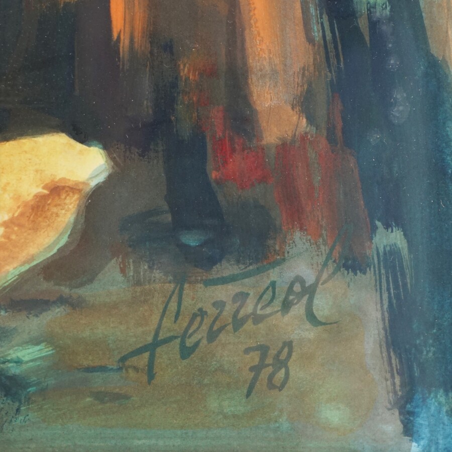 FERREOL (XXe), "L'artisan dans son atelier" 78, gouache sur papier, signée et datée en bas à droite, 40 x 56 cm (à vue).
