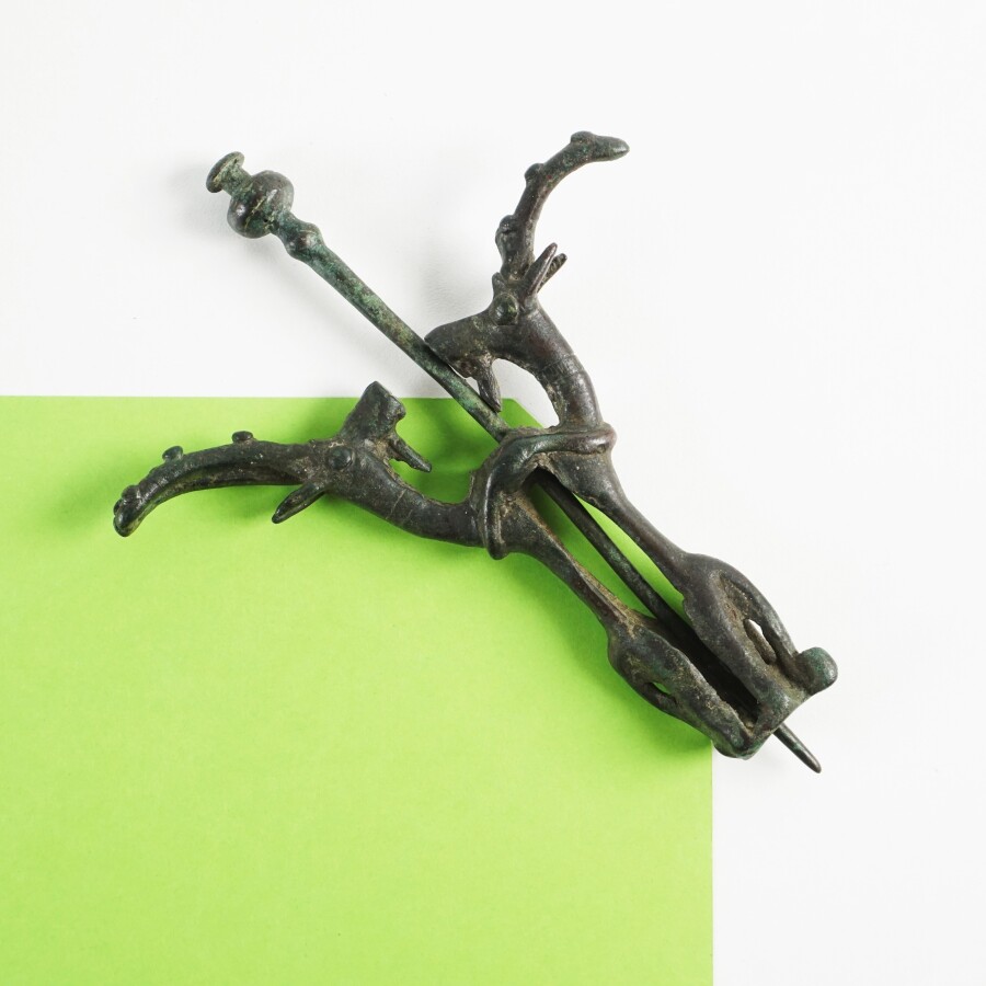 Fibule en bronze, Asie mineure, L. 10.5 et 15.5 cm (accident à la corne).
