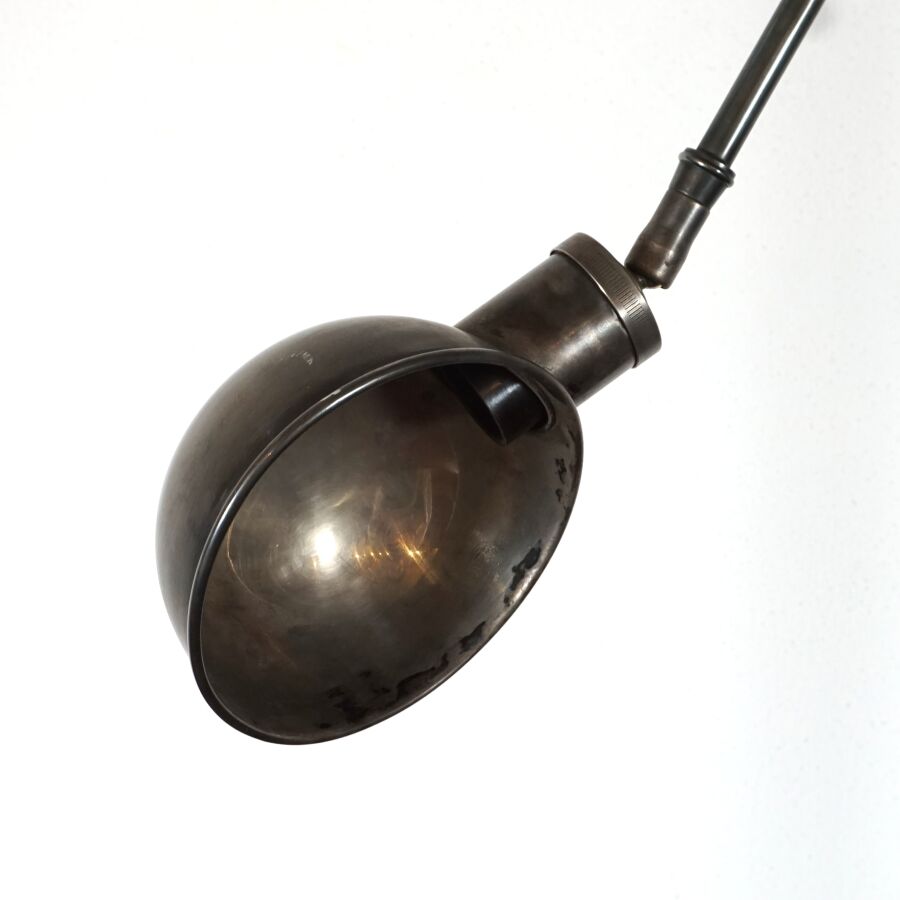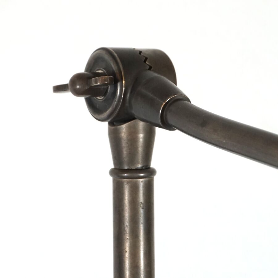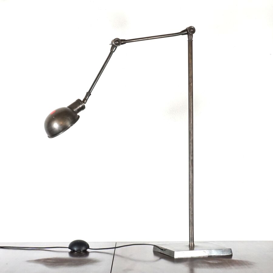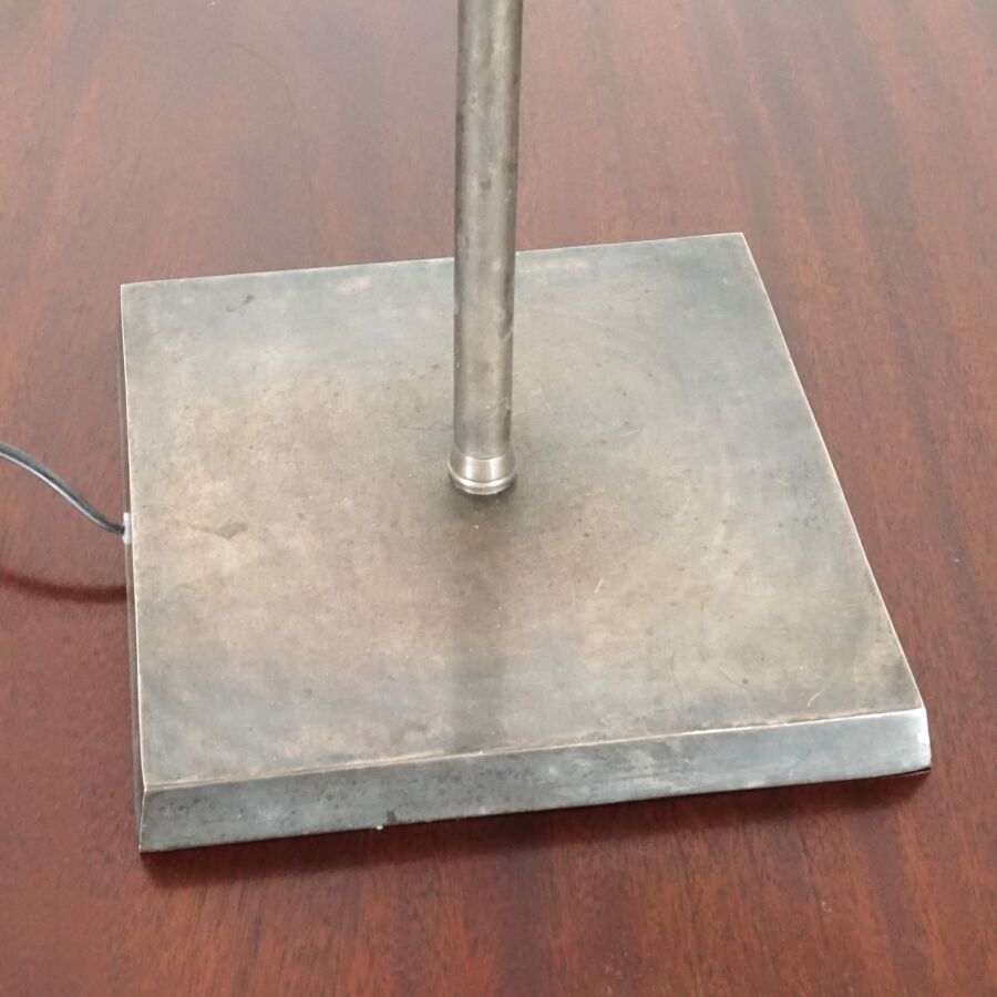 FLAMANT : Lampe à poser à deux bras articulé en métal chromé, base carrée, H. Pliée : 90 cm (usures).
