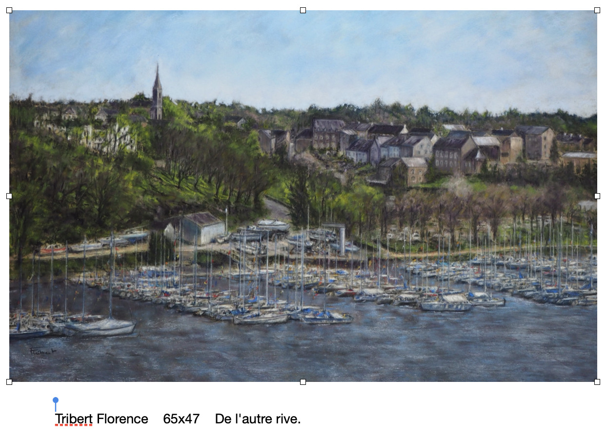 Florence TRIBERT, "de l'autre rive", technique mixte sur toile signée en bas à gauche, 47 x 65 cm.