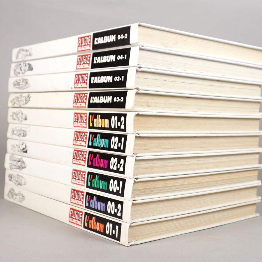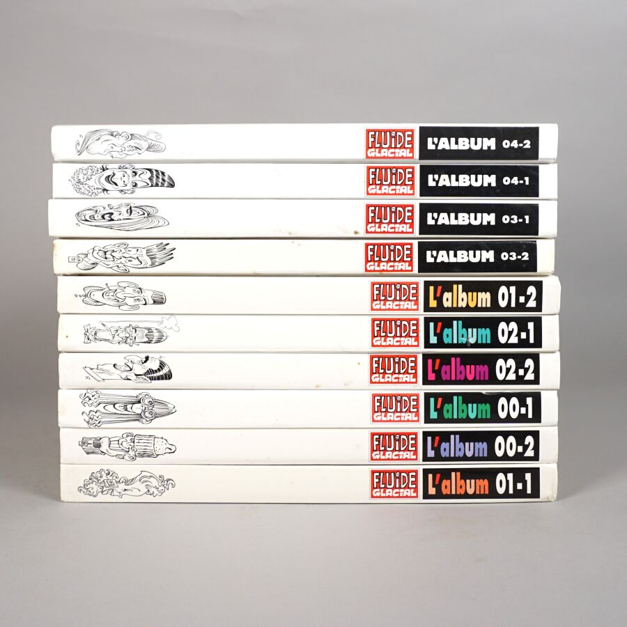 FLUIDE GLACIAL, éd. AUDIE : Ensemble de 10 albums comprenant les éditions reliées des revues Fluide glacial 00.1, 00.2, 01.1, 01.2, 02.1, 02.2, 03.1, 03.2, 04.1 et 04.2.