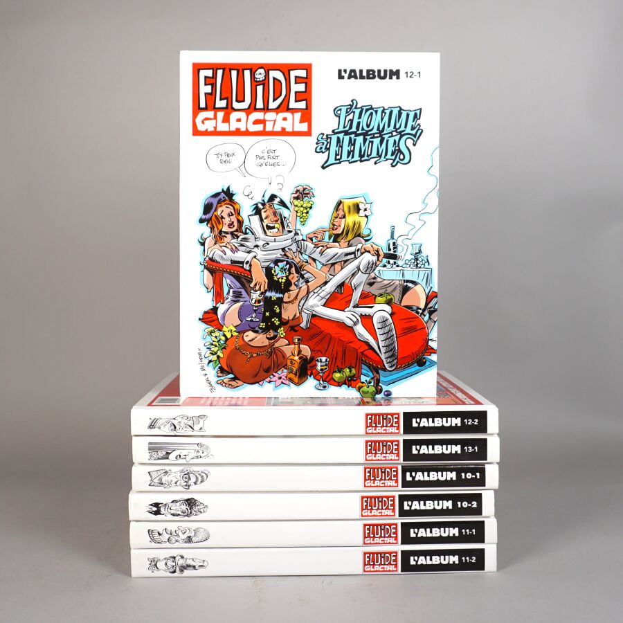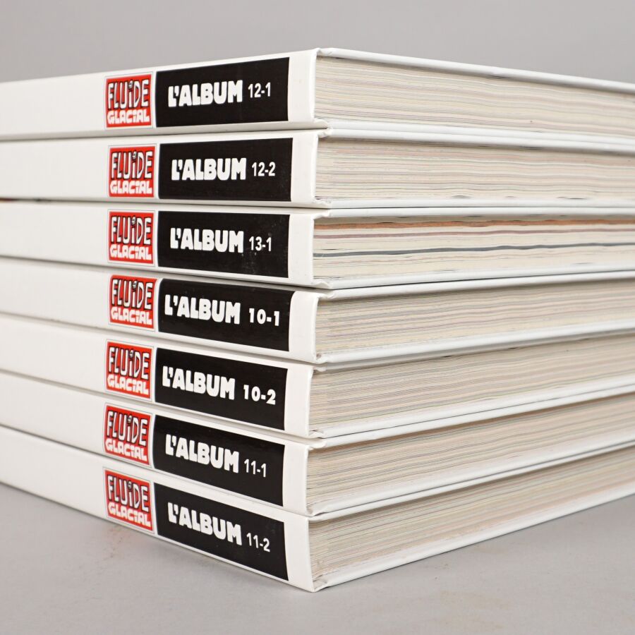 FLUIDE GLACIAL, éd. AUDIE : Ensemble de 7 albums comprenant les éditions reliées des revues Fluide glacial 10.1, 10.2, 11.1, 11.2, 12.1, 12.2 et 13.1.
