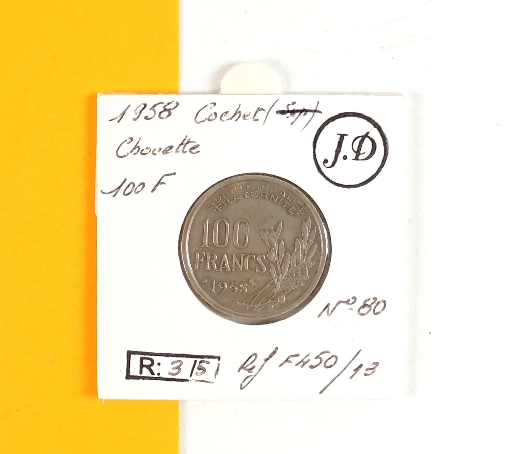 FRANCE : 100 Francs 1958 type Cochet "chouette", TB +.