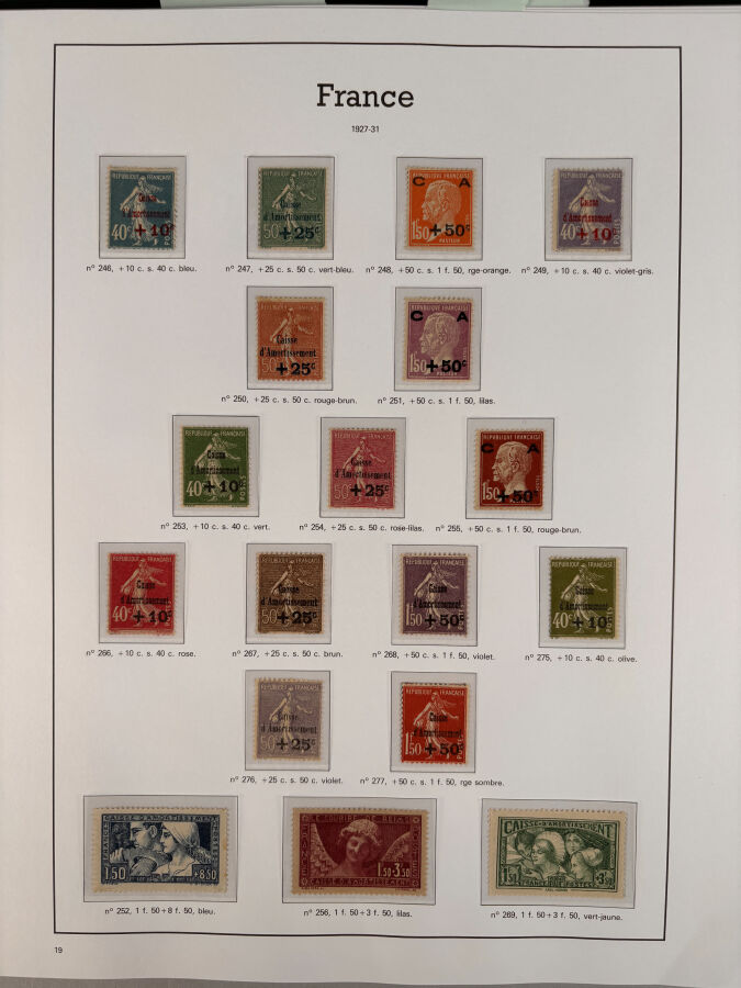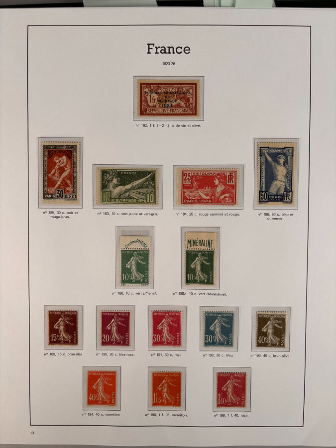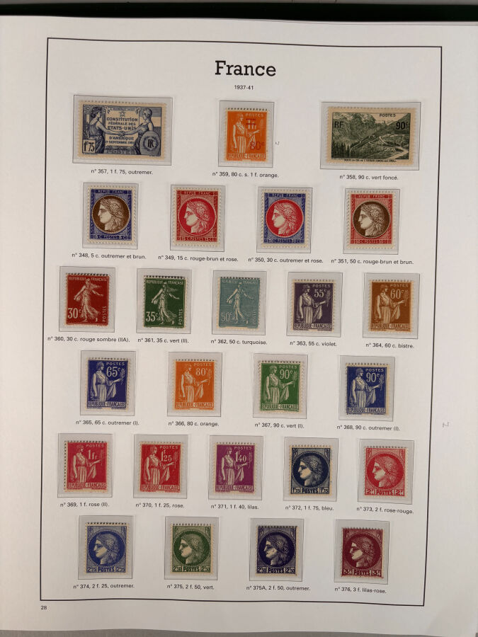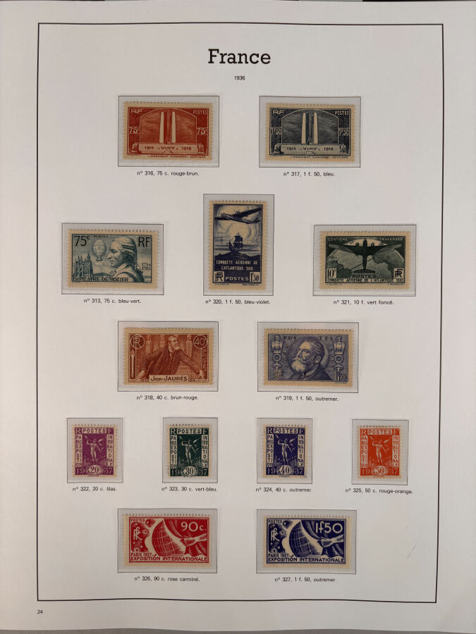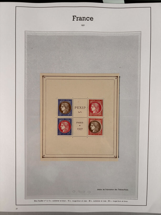 FRANCE (1900 à 1955): En album YVERT avec pochettes, collection de TP N** sauf exception dont N°122 N*, 148/55, 182, 188A, blocs 1 et 2, CA complet CA complet 257A, 262, 321 etc, très forte cote.