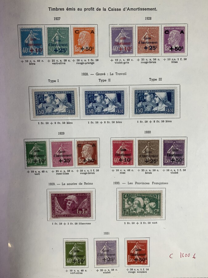 FRANCE "CAISSE D'AMORTISSEMENT" : Complet avec les 3 types du n° 252 N*, TTB. Cote 1 600 €.