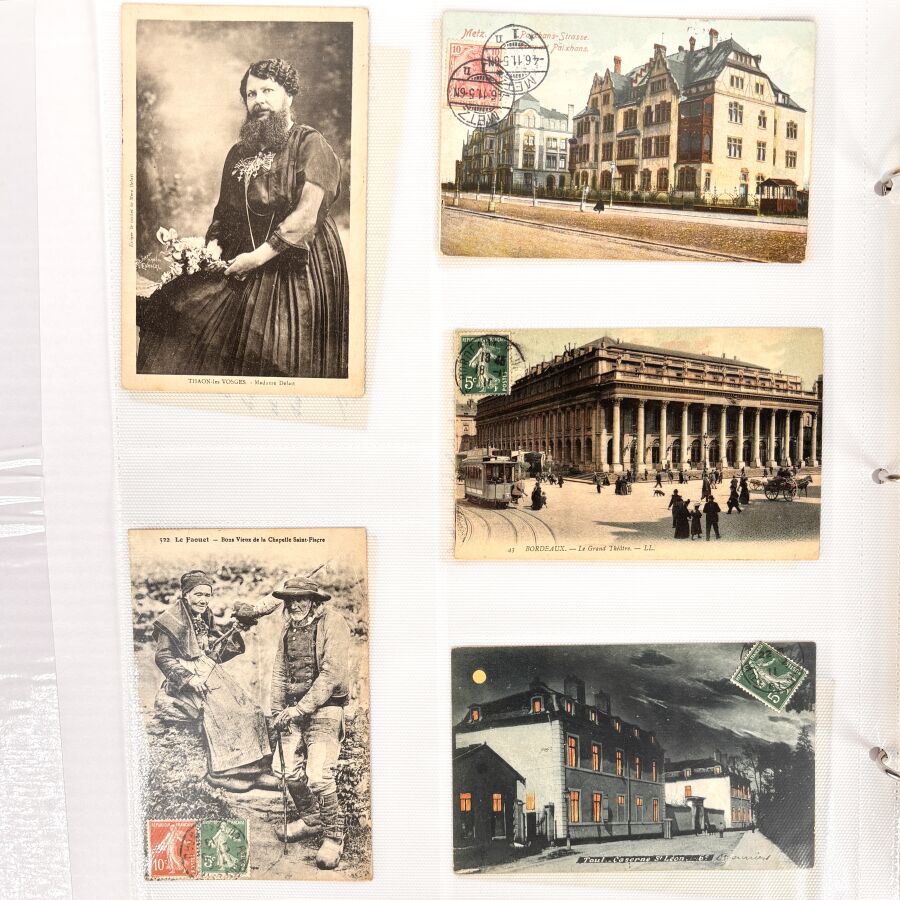FRANCE : Collection particulière comprenant un album de 400 cartes postales, complétée d'environ 300 cartes postales non classées, l'ensemble ayant voyagé. On y joint un complément de mille cartes vierges, dos simple et divisé.