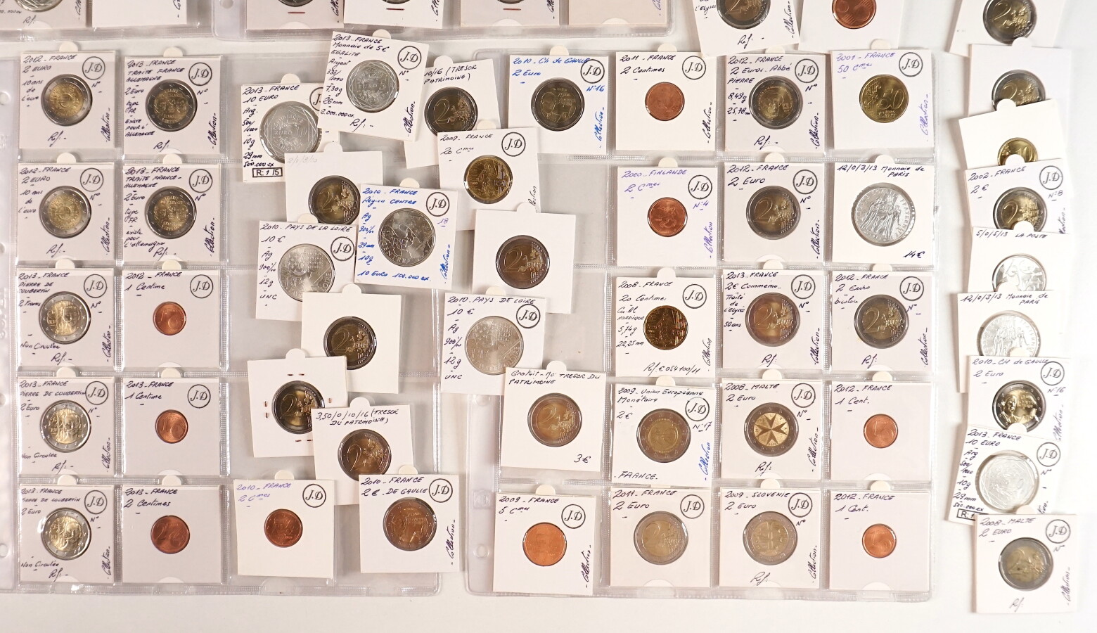 FRANCE : Ensemble d'environ 102 monnaies en Euro, dont certaines en argent.