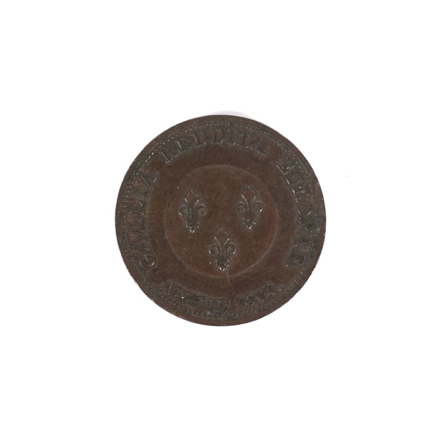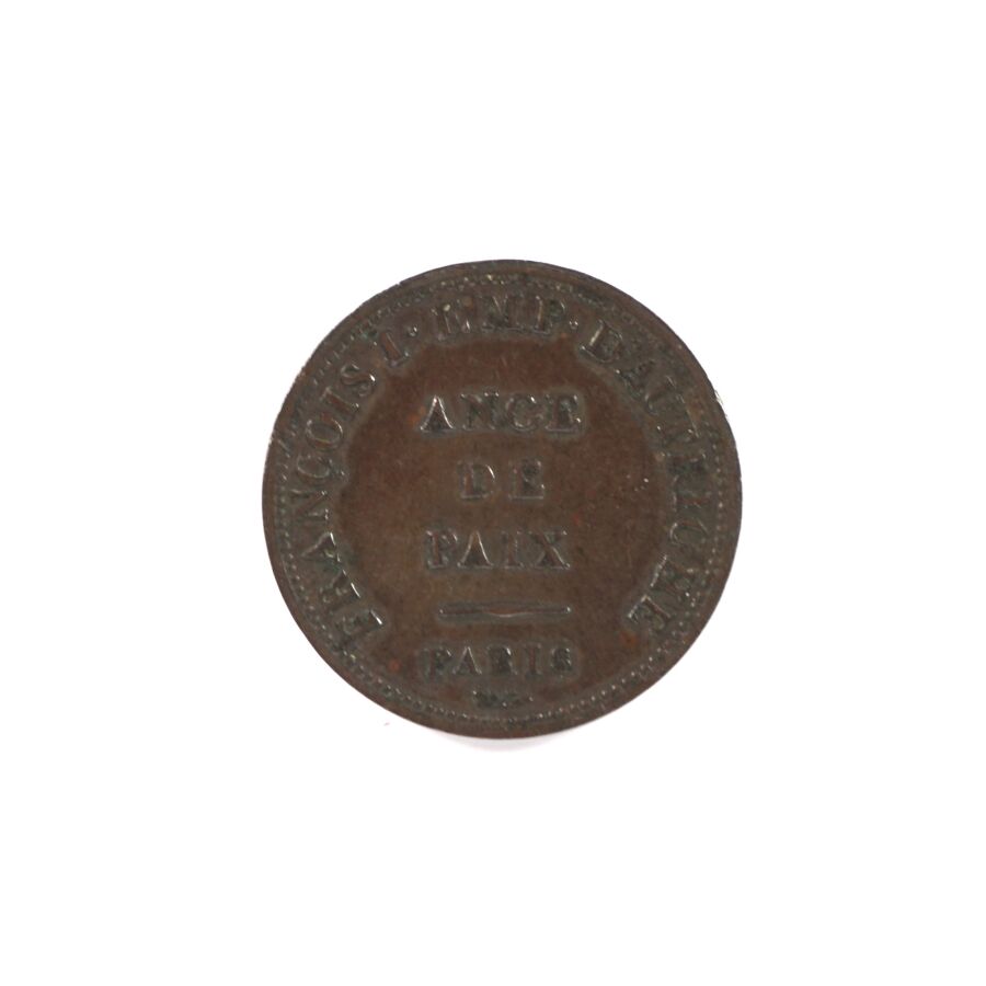 FRANCE : Essai en bronze au module de la 2 Francs, Ange de Paix, François 1er Empereur d'Autriche, Paris 1814 par Thiollier, D. 27 mm. Poids brut : 7 g environ.