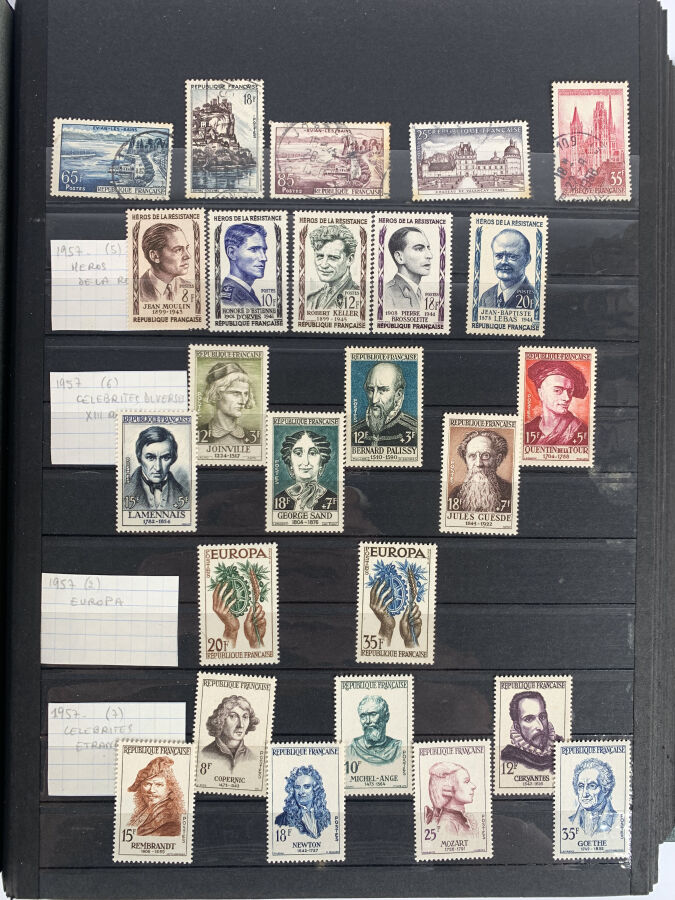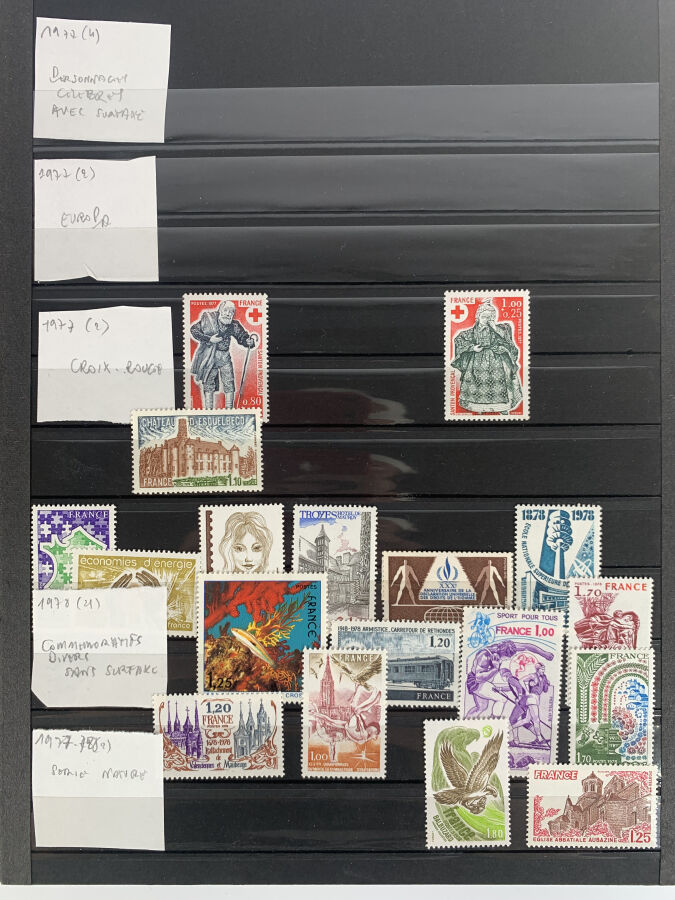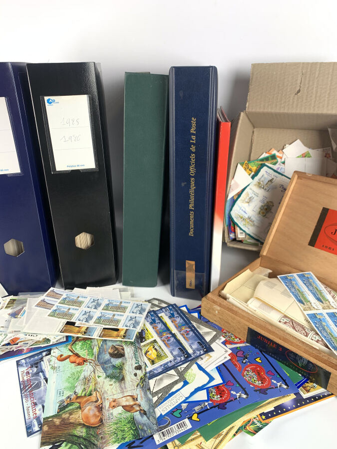 FRANCE ET ANDORRE : Important ensemble de TP comprenant un lot d'ANDORRE moderne N**, une collection de TP de FRANCE N** récents (valeur faciale supérieure à 2 100 €), documents PTT récents, 2 classeurs de FRANCE à forte faciale, ainsi qu'un ensemble de vrac (dont environ 600 € de faciale).