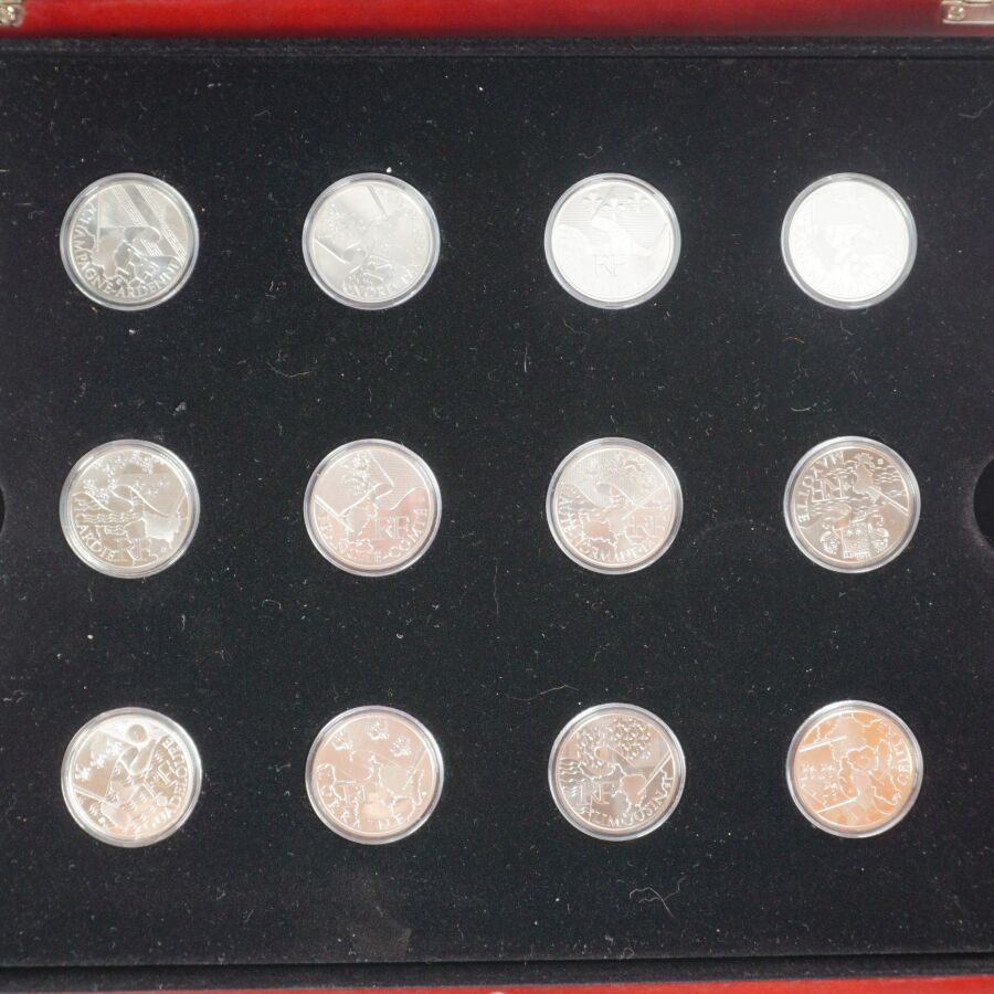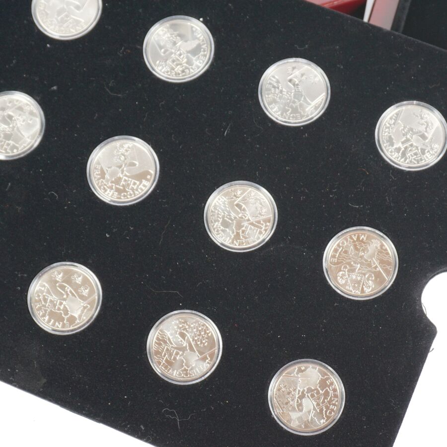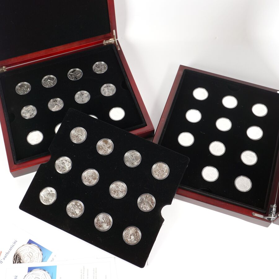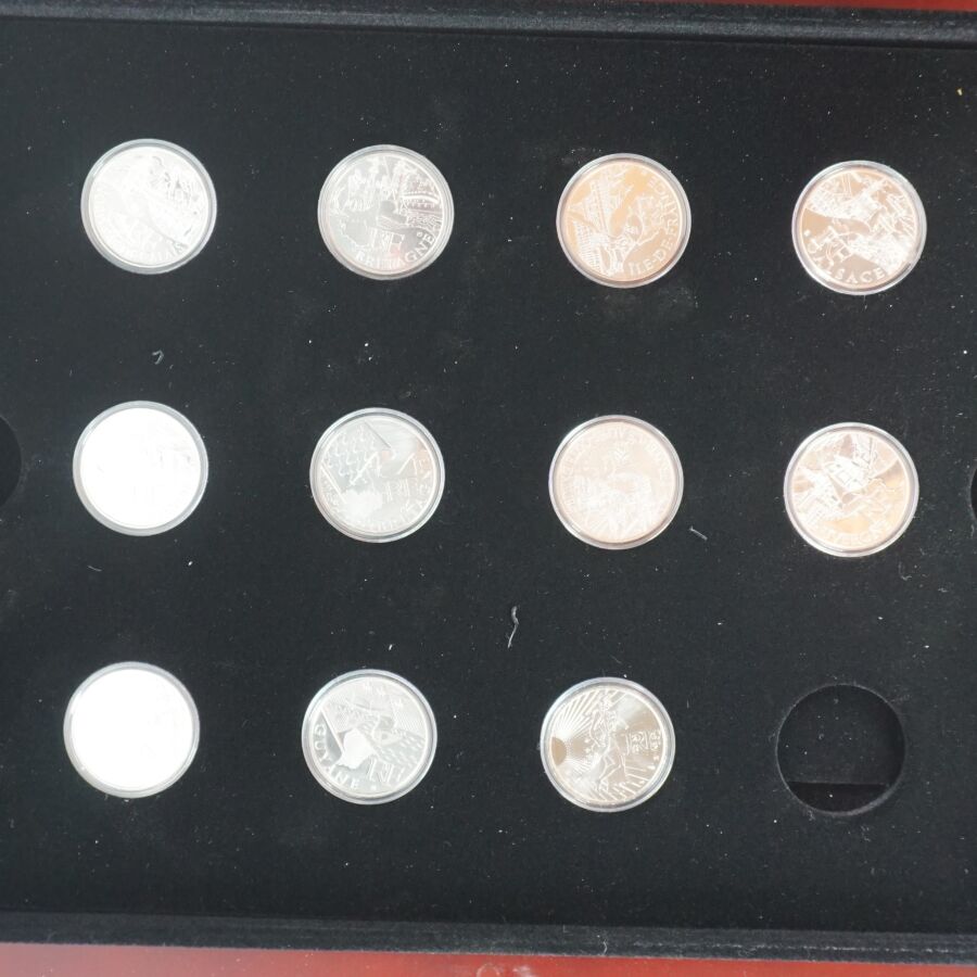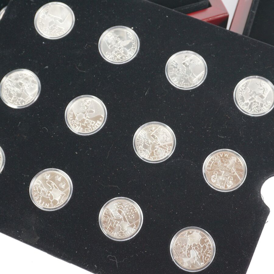 FRANCE EURO : 2 coffrets contenant 37 monnaies de 10€ des Régions 2010 et 2011 en argent 900/oo, Poids brut total : 370 g environ.
