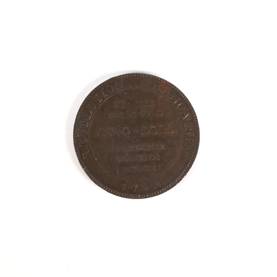 FRANCE : Monneron de Cinq Sols à l'hercule 1792 An IV. TTB+.