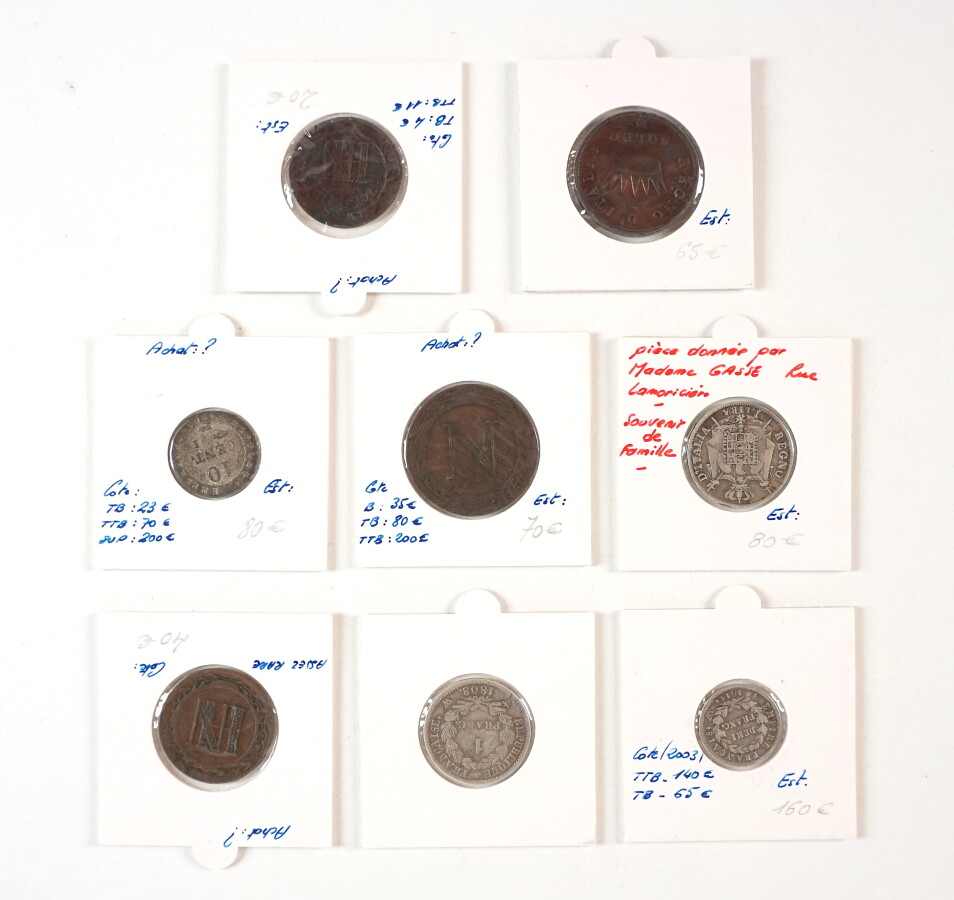 FRANCE - NAPOLEON Ier : Ensemble de 8 monnaies, comprenant :